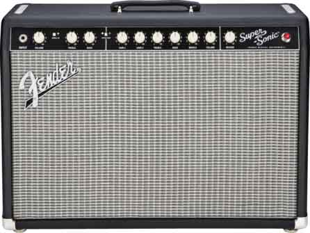 Super-Sonic amplifiers are the favorite tool of pro guitarists in many different musical genres who love to create glorious Fender clean tones and expressive modern high-gain tones with one no-nonsense tube amp. The Super-Sonic 22 Combo delivers this versatility with the organic feel and moderate output power of the legendary Deluxe Reverb amp, perfect for most stage and studio applications. The vintage channel delivers pure, unmistakable Fender tone, and the awesome burn channel ignites musical inspiration with overdrive flavors ranging from bluesy to flame-throwing. And while the Super-Sonic 22 is capable of heavily saturated tube distortion and sustain, it never masks the tonal character of your guitar. Available in two classic cosmetic treatments - Black/Silver and 1961-style Blonde/Oxblood, both with ivory radio knobs and flowing 1960s script logo.