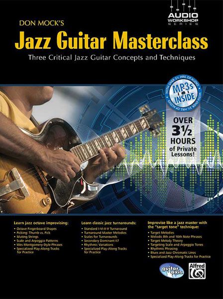 This amazing three-section set of personal lessons with jazz guitar guru Don Mock features hours of personal audio instruction, play-along tracks, and demonstrations, with a complete accompanying book of music examples, exercises, and transcriptions in notation and TAB Section 1 covers the all-important, Wes Montgomery-inspired Octave Technique. Section 2 is devoted to the target tone concept, which simplifies the improvising process, enabling you to play sophisticated lines that resolve beautifully into the correct chord tones. Section 3 is devoted to turnarounds: short four-chord progressions often found at the end of tunes to setup and return to the beginning.