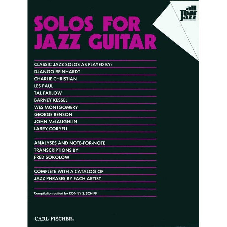 The solos in this collection demonstrate the styles and techniques of major trailblazers of the jazz guitar. With solos as played by Django Reinhardt, Charlie Christian, Les Paul, Tal Farlow, and more. Jazz is always evolving, and major jazz artists always have a deep respect for the past; they know their musical roots. To study these solos is to examine the directions jazz guitar improvisation has taken since the thirties. You'll have more fun playing and listening when familiar with the styles of the great guitarists.
