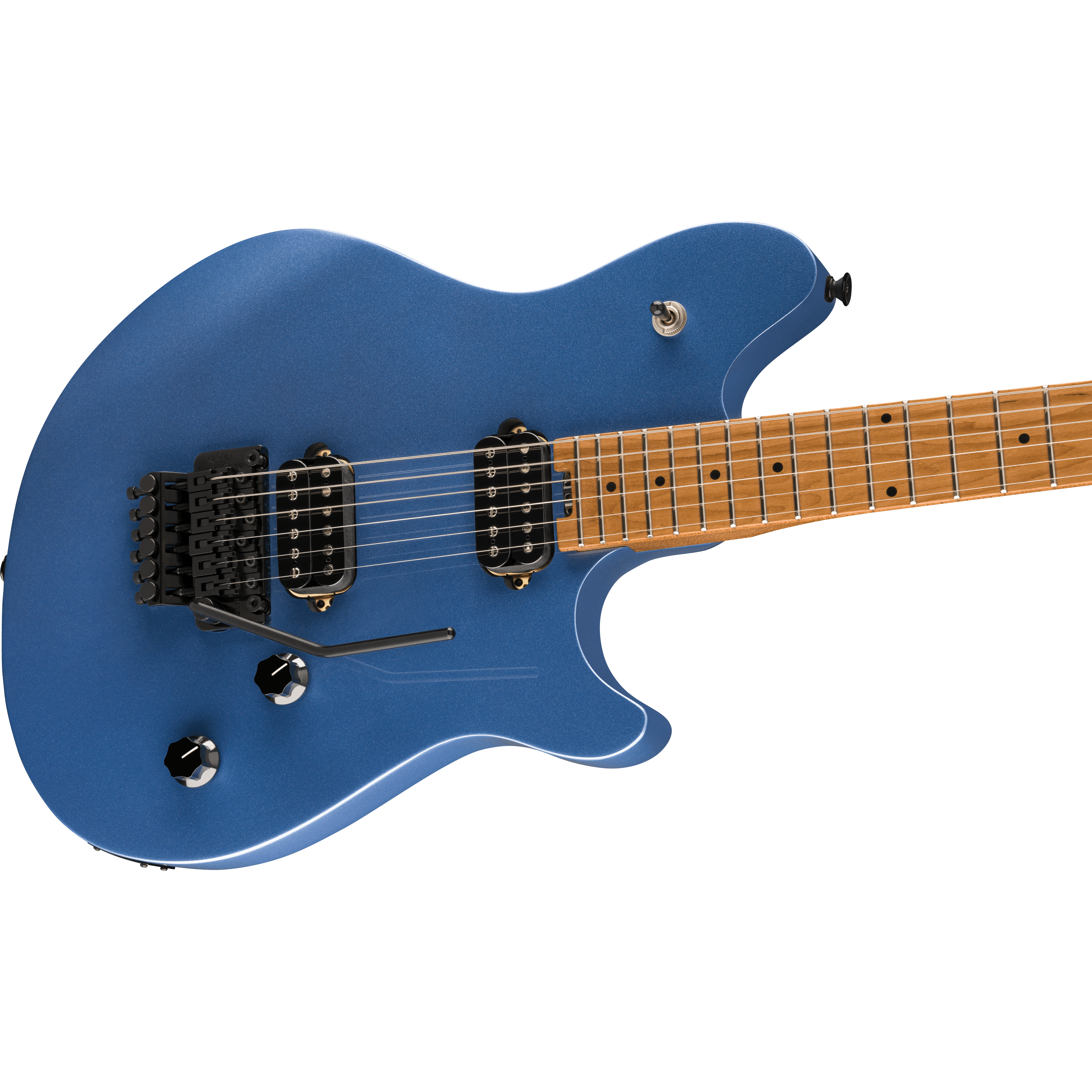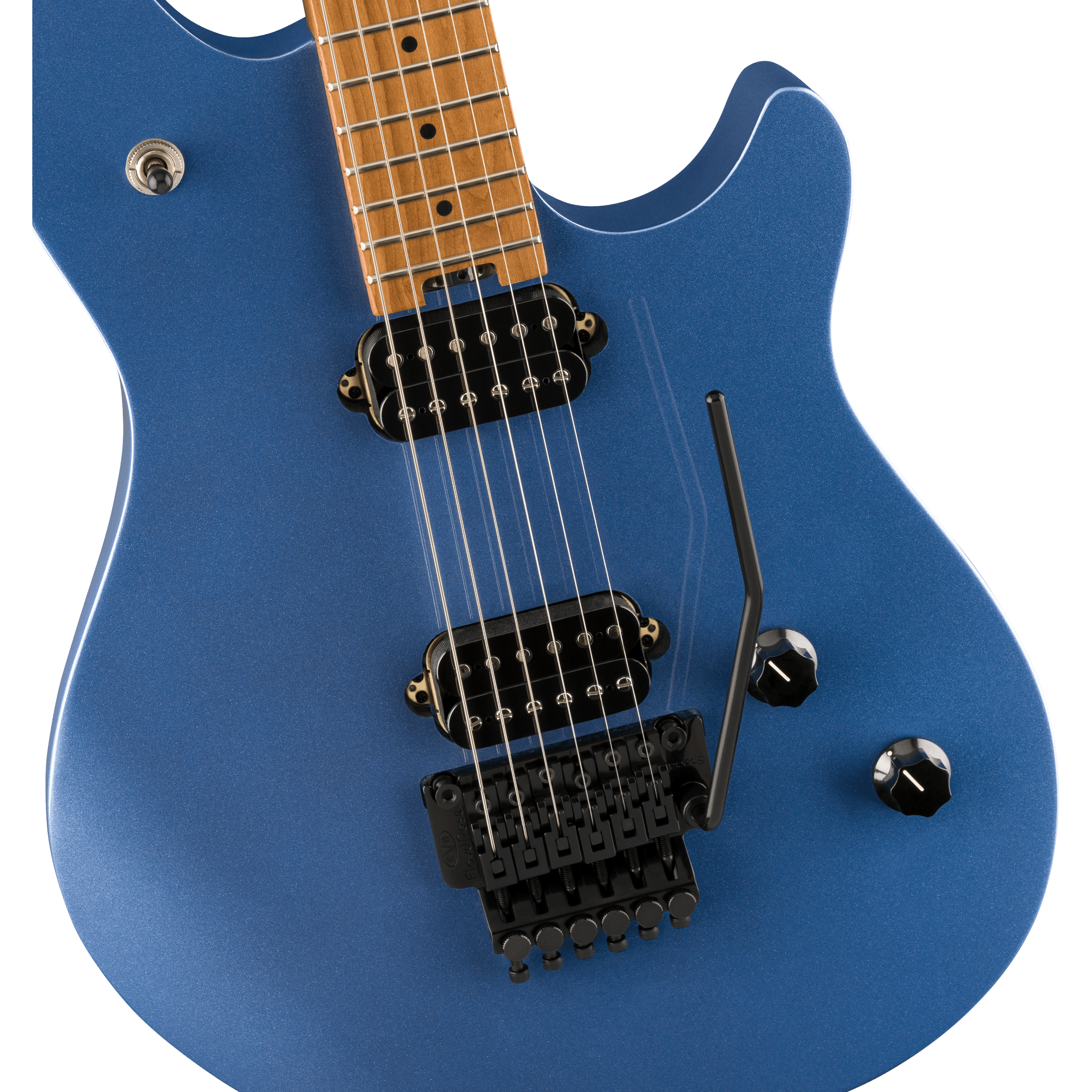 Dual EVH® Wolfgang humbucking pickups mounted directly to the body increase vibration transfer, resulting in sustain for days on end. The black knurled tone and volume control knobs have been have been dialed-in to Van Halen's exacting specifications - the smooth-feeling 500k pots make it easy to find a unique sound while retaining the crisp high-end sparkle of the Wolfgang pickups. The EVH-branded Floyd Rose® Special bridge and R2 locking nut consistently keep the guitar in tune through the deepest whammy dives and horse whinnies.