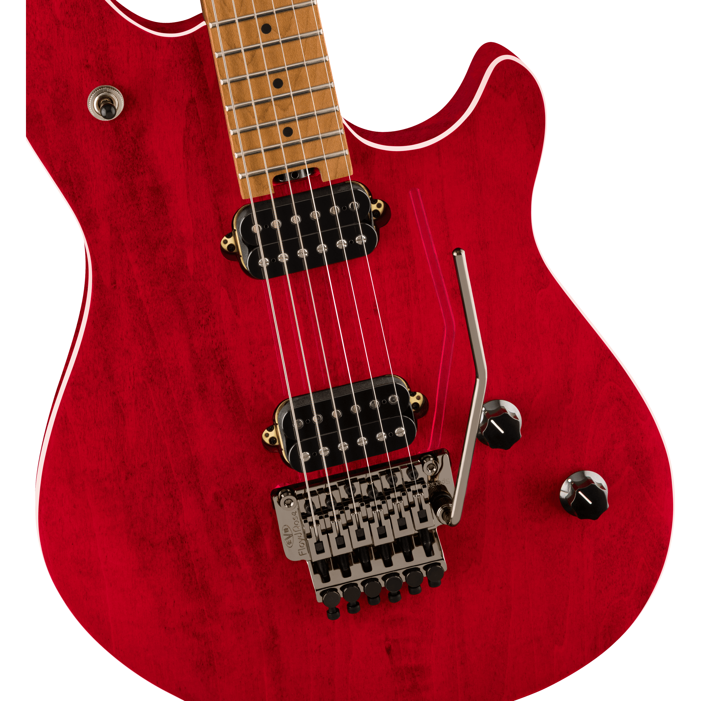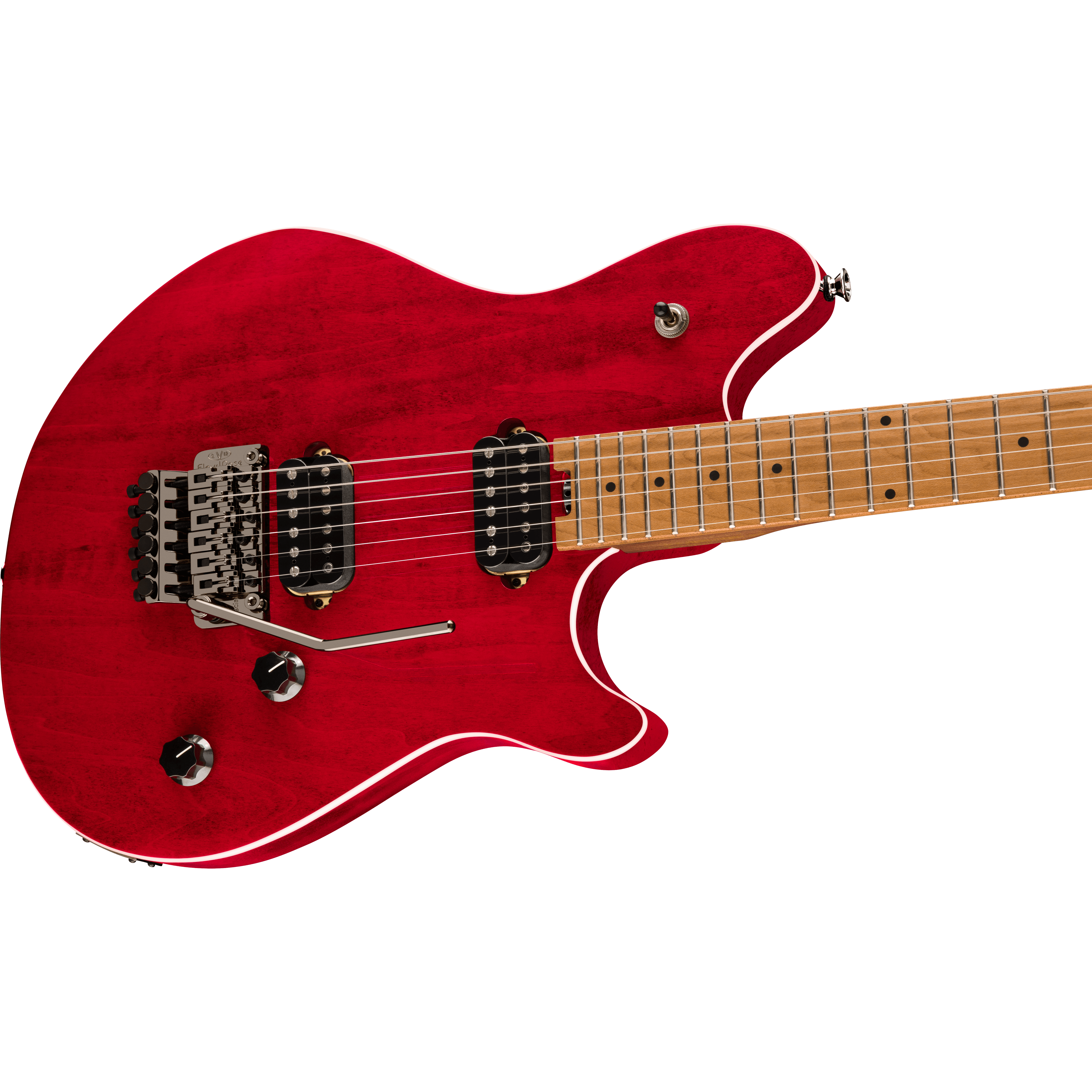 Dual EVH® Wolfgang humbucking pickups mounted directly to the body increase vibration transfer, resulting in sustain for days on end. The black knurled tone and volume control knobs have been dialed-in to Van Halen's exacting specifications - the smooth-feeling 500k pots make it easy to find a unique sound while retaining the crisp high-end sparkle of the Wolfgang pickups. The EVH-branded Floyd Rose® Special bridge and R2 locking nut consistently keep the instrument in tune through the deepest whammy dives and horse whinnies.