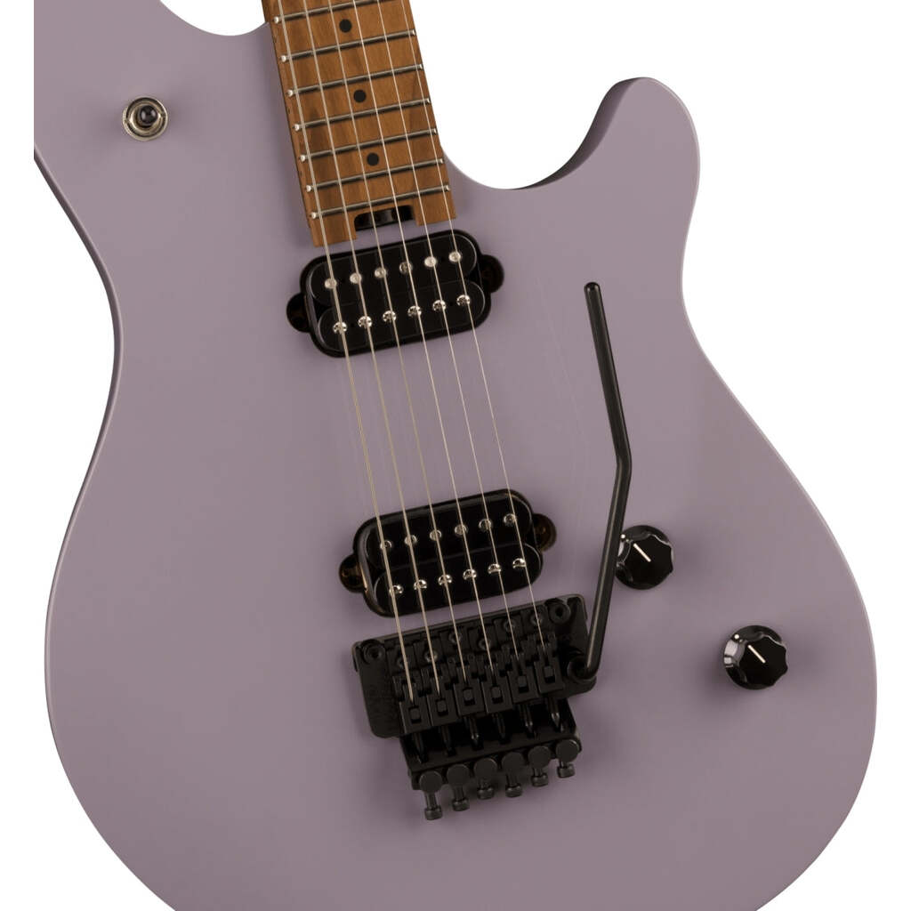 Dual EVH® Wolfgang humbucking pickups mounted directly to the body increase vibration transfer, resulting in sustain for days on end. The black knurled tone and volume control knobs have been have been dialed-in to Van Halen’s exacting specifications—the smooth-feeling 500k pots make it easy to find a unique sound while retaining the crisp high-end sparkle of the Wolfgang pickups. The EVH-branded Floyd Rose® Special bridge and R2 locking nut consistently keep the guitar in tune through the deepest whammy dives and horse whinnies.