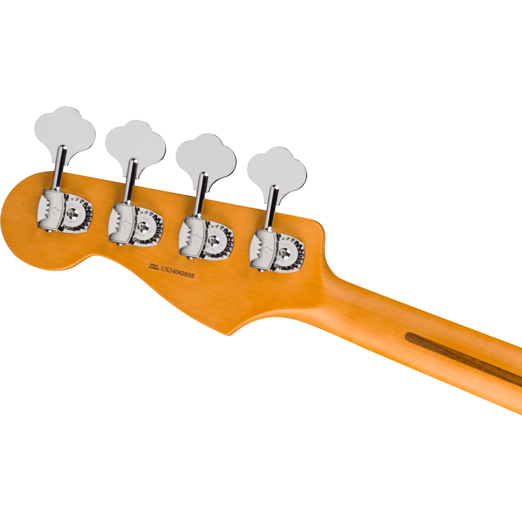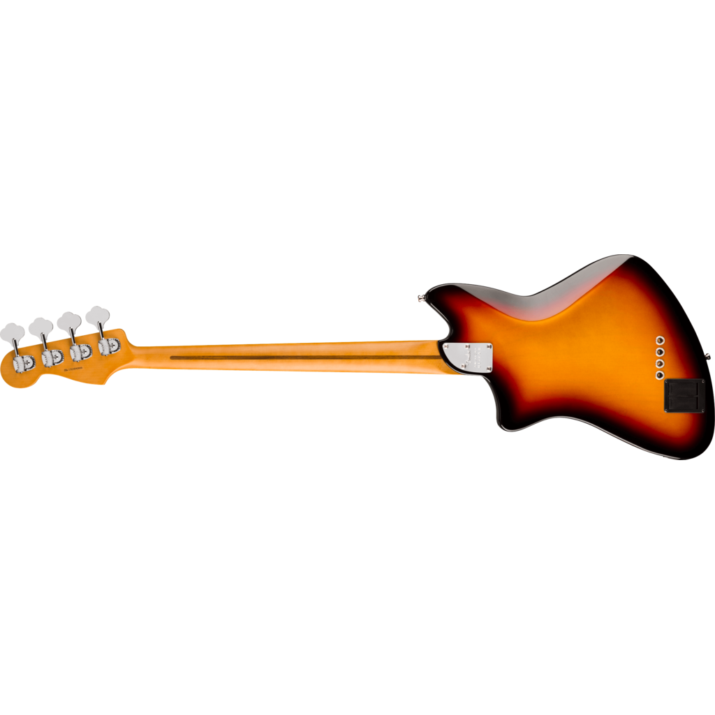 The Fender® American Ultra II Meteora® Bass features a select alder body with sculpted body contours. For effortless playability, the quartersawn maple neck features our Modern D profile and smooth Ultra Satin finish. Ebony or quartersawn maple 10”-14” compound radius fingerboards feature Ultra rolled edges, medium-jumbo frets, Luminlay® side dots and Graph Tech® TUSQ® nuts. The tapered neck heel and sculpted body contours allow unparalleled access to the higher register, while the truss rod access at the headstock provides convenient and easy setup and adjustment.