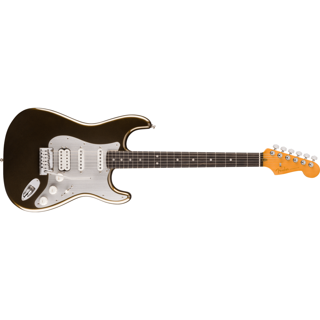 The Fender® American Ultra II Stratocaster® HSS features a select alder body with sculpted body contours. For effortless playability, the quartersawn maple neck features our Modern D profile and smooth Ultra Satin finish. Ebony or quartersawn maple 10”-14” compound radius fingerboards feature Ultra rolled edges, medium-jumbo frets, Luminlay® side dots and Graph Tech® TUSQ® nuts. The tapered neck heel and sculpted body contours allow unparalleled access to the higher register.