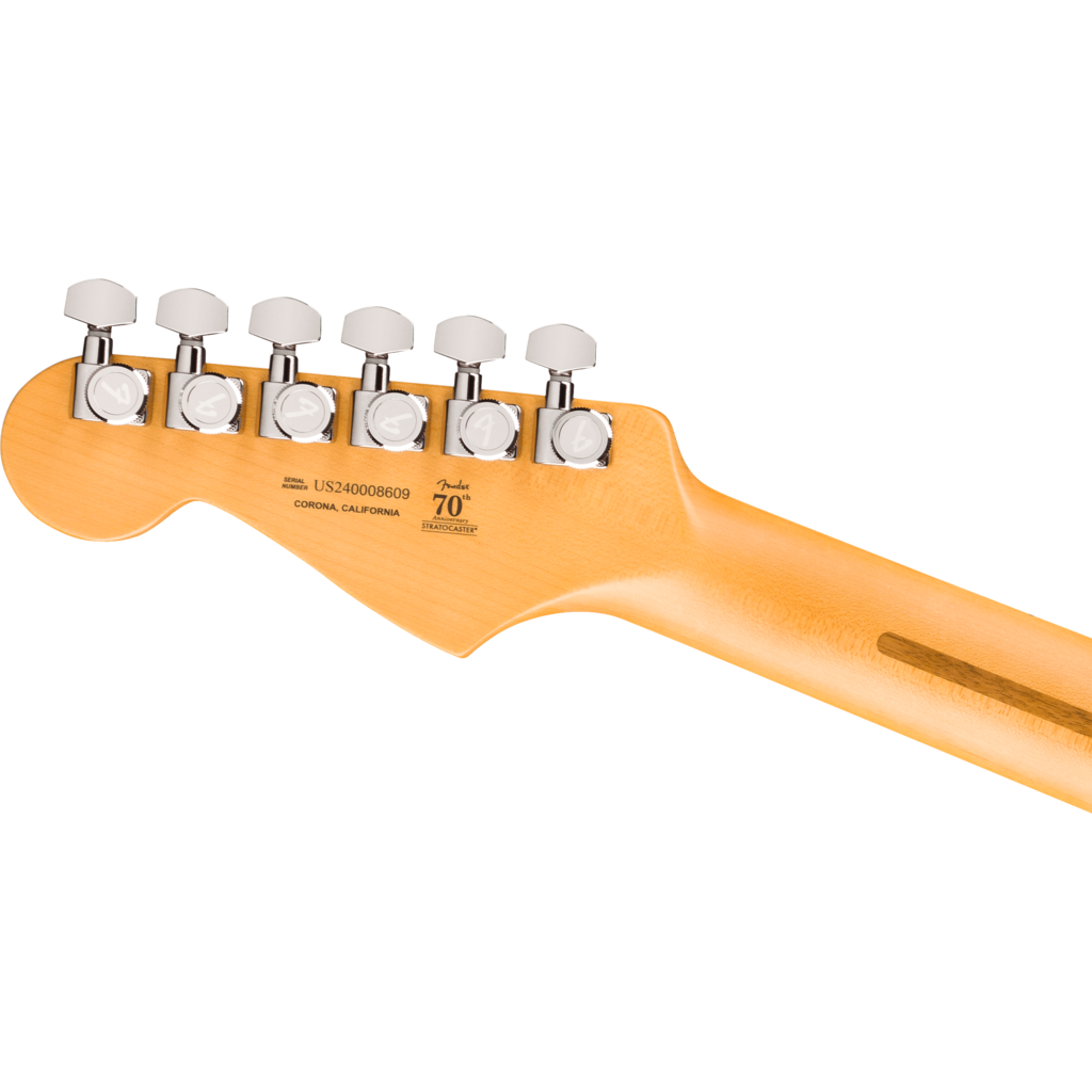 Under the hood, a pair of Ultra II Noiseless™ Hot Strat® pickups paired with a Haymaker™ Humbucker deliver everything from sweet crystalline cleans to searing leads, all without a hint of hum. Our patented S-1™ switch cleverly splits the Haymaker for even more tonal variety. Additional road-ready features include 2-Point American Ultra synchronized tremolo with pop-in arm, polished stainless steel block saddles, cold rolled steel block, deluxe locking tuners, soft-touch knobs and 1-ply anodized aluminum pickguard.
