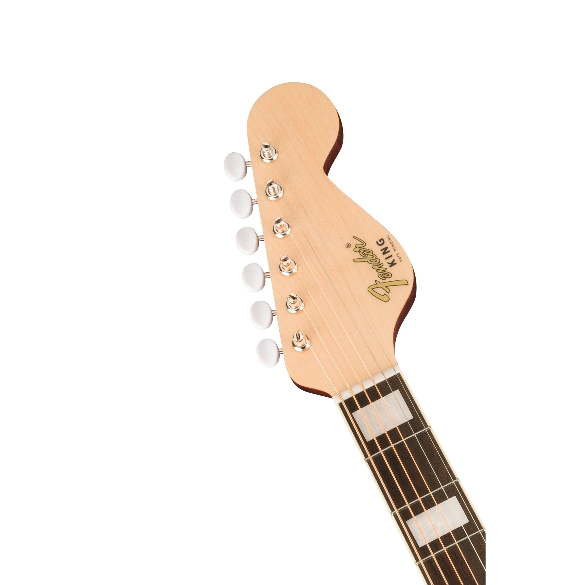 Engineered with an innovative Performance-X™ bracing pattern, the dreadnought body of the Fender California Vintage King is lightly crafted with a solid Sitka spruce top and solid ovangkol back and sides to effortlessly produce a substantial, bass-filled voice with exceptional detail, projection and volume. An ergonomic modern "V" profile was chosen for the okoume neck along with a 25.5" scale length for optimal sustain, and a tilt-back 6-in-line headstock with a maple headcap for a distinctive look born from Fender's electric guitar DNA. Other notable details include a bound ovangkol fingerboard with pearloid block inlays for a throwback look, vintage-style tuning machines for smooth, accurate tuning, and a bone nut and saddle for superior harmonic character. Designed for the performer, the onboard Fishman® Presys VT Plus preamp system features seamless soundhole-mounted controls that blend an undersaddle piezo and internal body transducer to allow faithful and reliable reproduction of the guitar's natural sound when plugged into an amplifier or recording device. A vintage-style hardshell case is included.