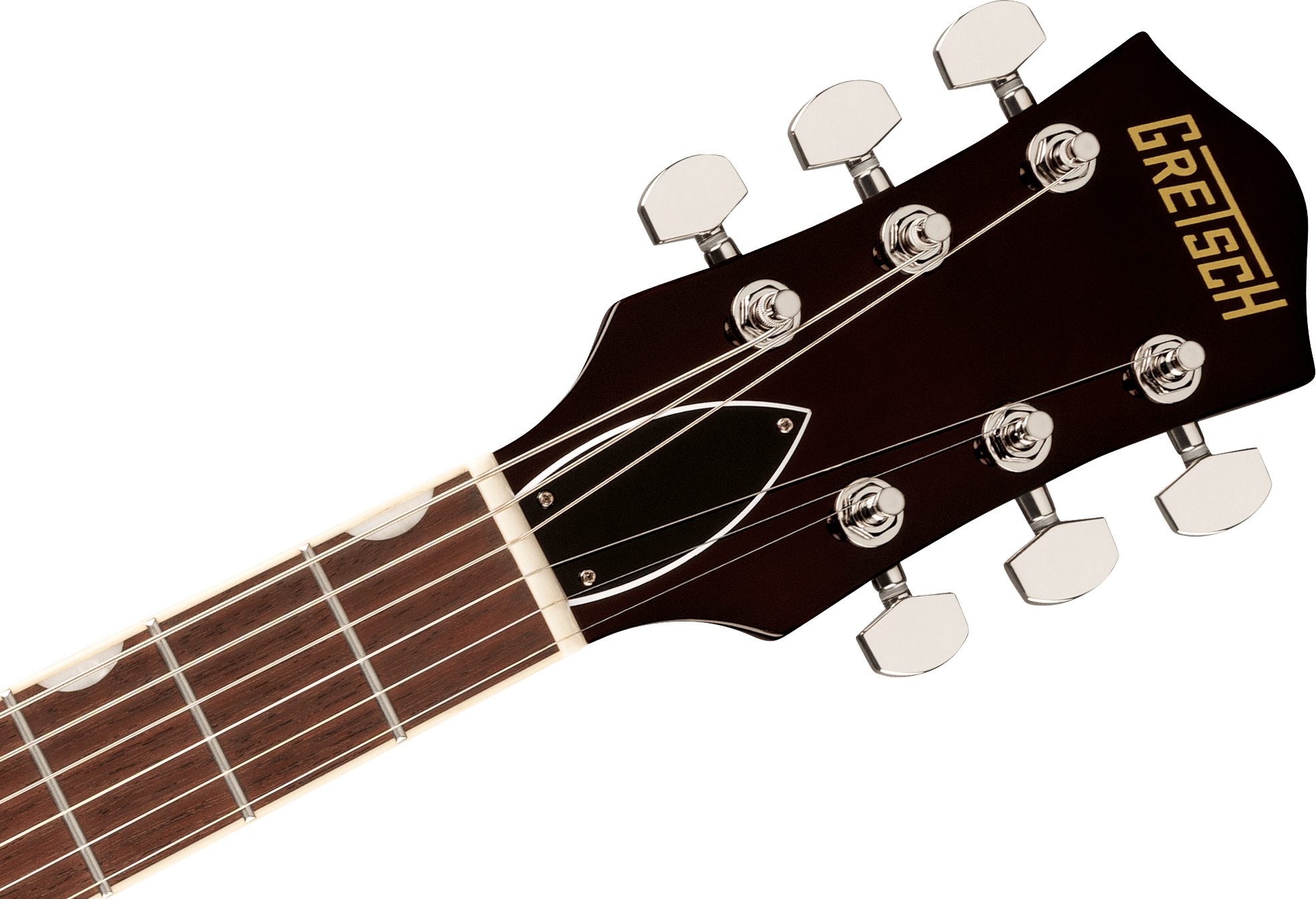 Featuring Alnico 5 magnets, the Twin Six™ humbucking pickups deliver strong mid-range for enhanced presence and attack, ideal for use with heavier drive tones. These pickups also provide crisp highs and full lows resulting in gut-punching power, remarkable balance and classic Gretsch articulation.