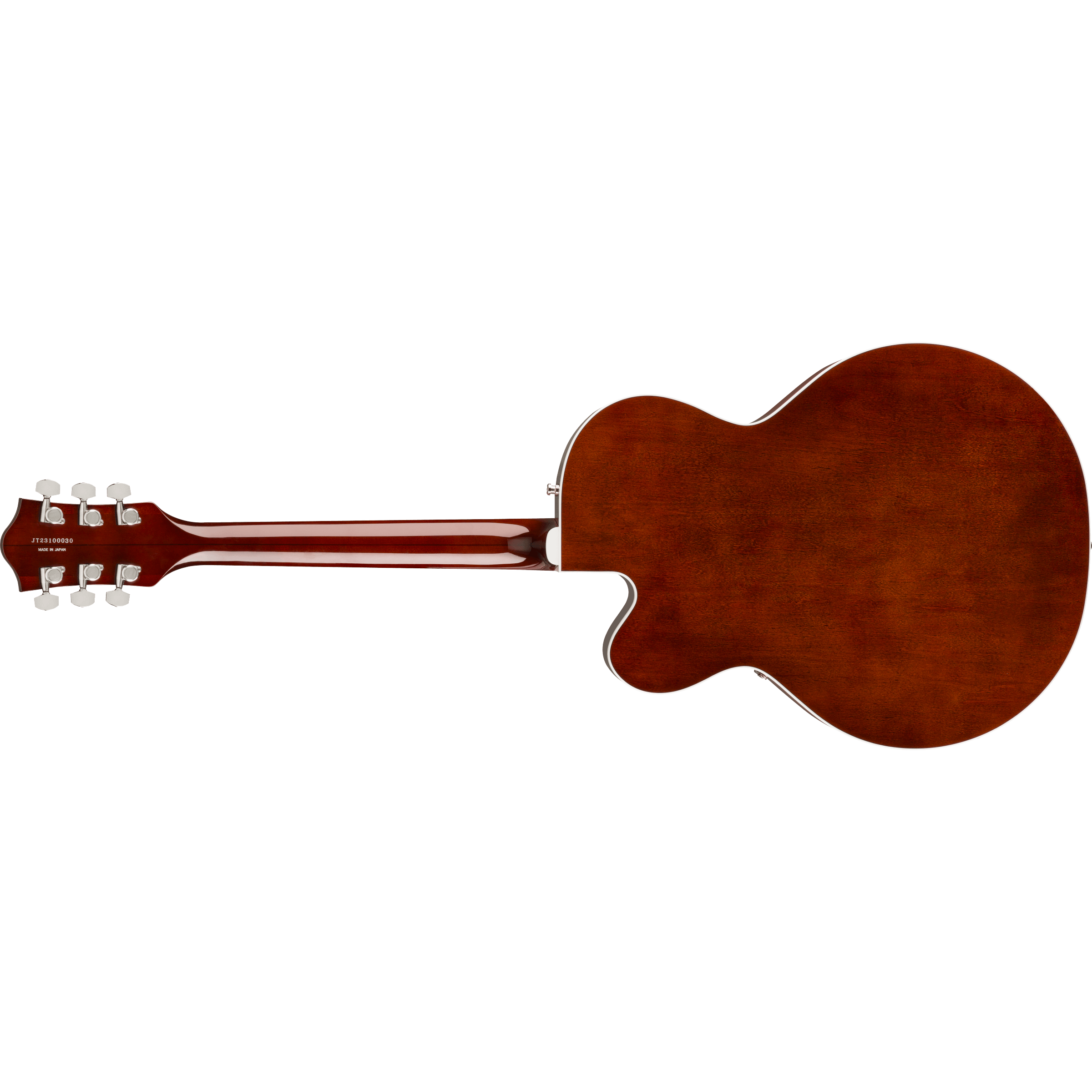 Our all-new Arc-Tone™ bracing is our most advanced bracing system to date. Featuring torrefied maple tone bars with arc-shaped spruce support braces located underneath the bridge area, this combination of materials and design provides enhanced sustain, crisp note attack and excellent feedback control while retaining the open voice players expect from a Gretsch hollow body guitar.
