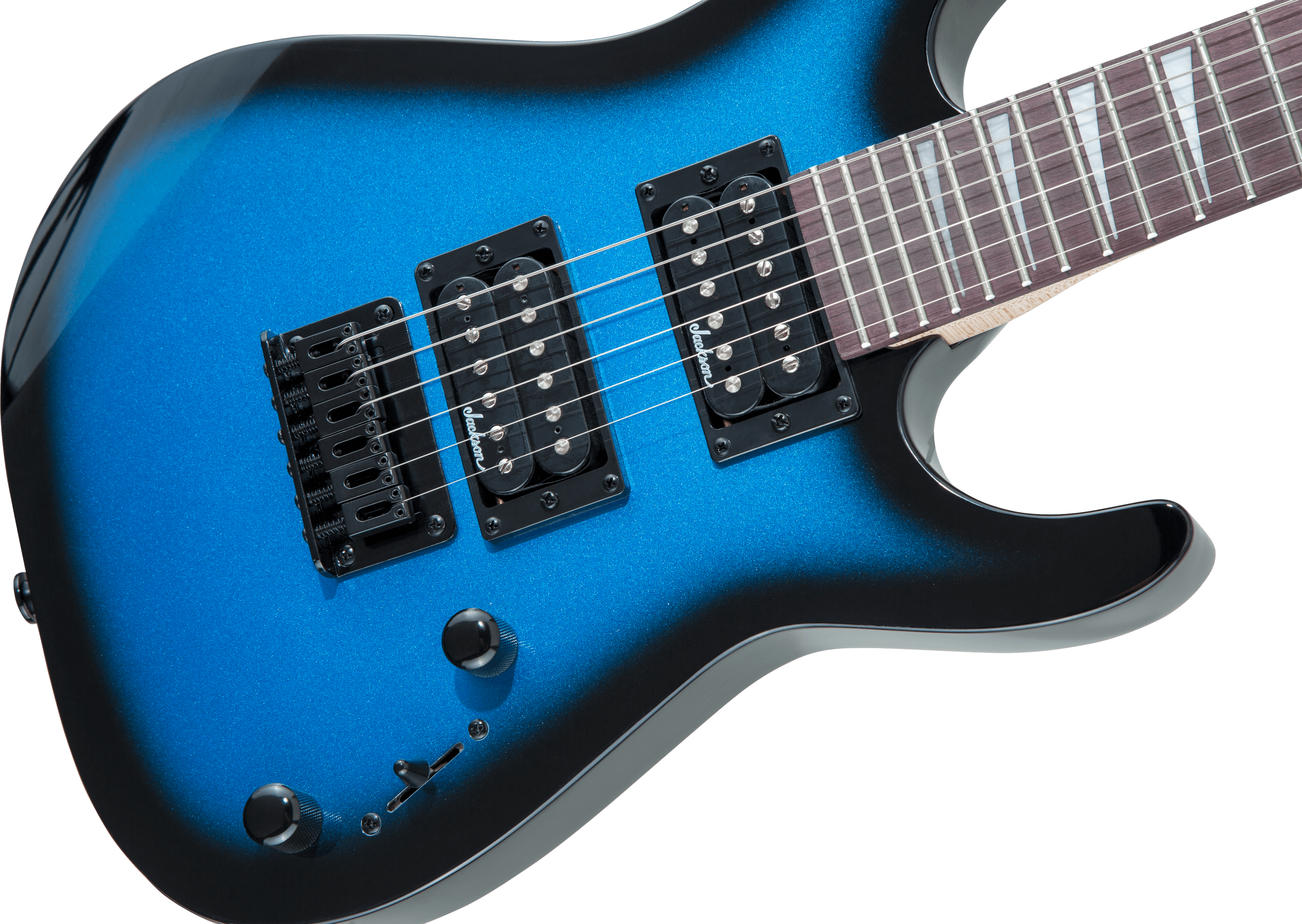 A pair of Jackson high-output humbucking pickups with ceramic magnets crank out clear tone with plenty of girth. The neck position delivers bright highs while the bridge adds plenty of crunchy distortion. Its versatile voice can be shaped with a three-way toggle switch and single volume and tone controls, while a string-through-body hardtail bridge with block saddles improves intonation and sustain.