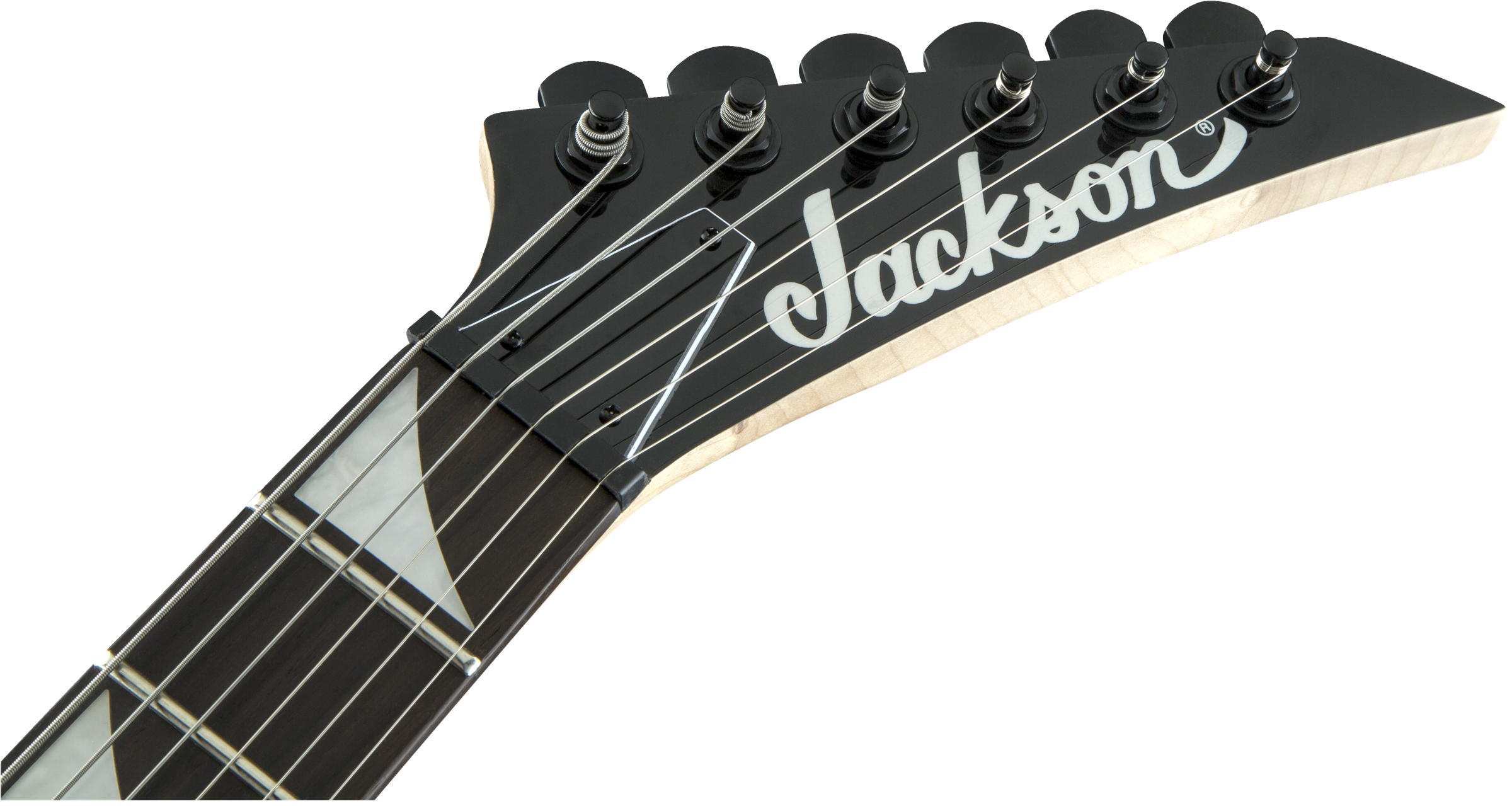 A pair of Jackson high-output humbucking pickups with ceramic magnets crank out clear tone with plenty of girth. The neck position delivers bright highs while the bridge adds plenty of crunchy distortion. Its versatile voice can be shaped with a three-way toggle switch and single volume and tone controls, while a string-through-body hardtail bridge with block saddles improves intonation and sustain.