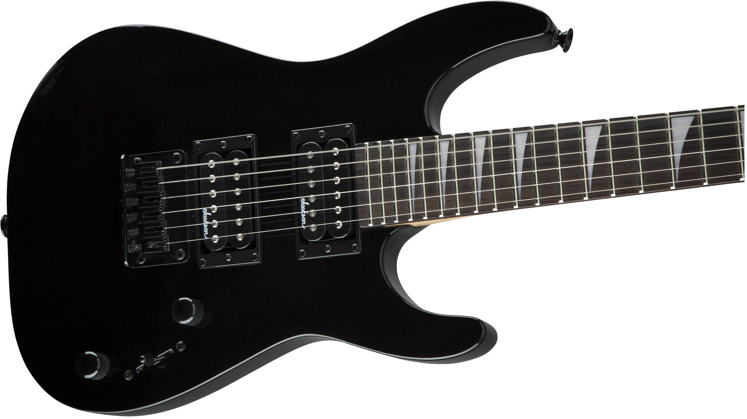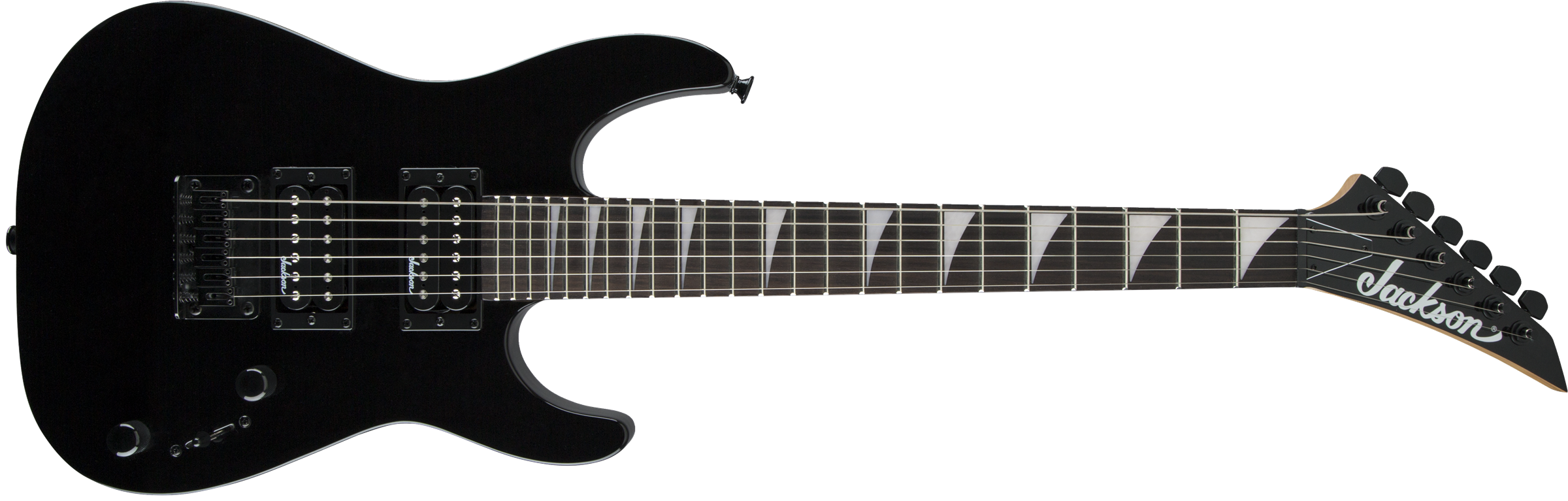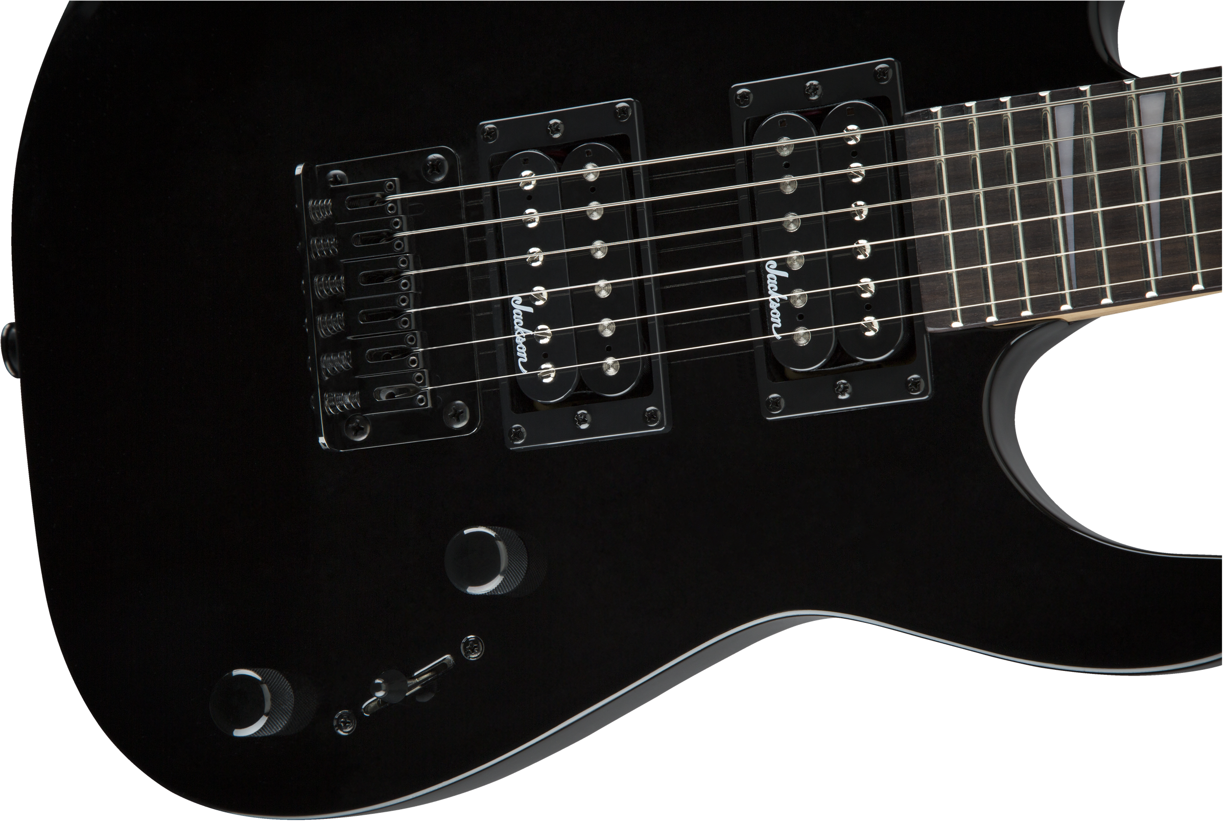A pair of Jackson high-output humbucking pickups with ceramic magnets crank out clear tone with plenty of girth. The neck position delivers bright highs while the bridge adds plenty of crunchy distortion. Its versatile voice can be shaped with a three-way toggle switch and single volume and tone controls, while a string-through-body hardtail bridge with block saddles improves intonation and sustain.