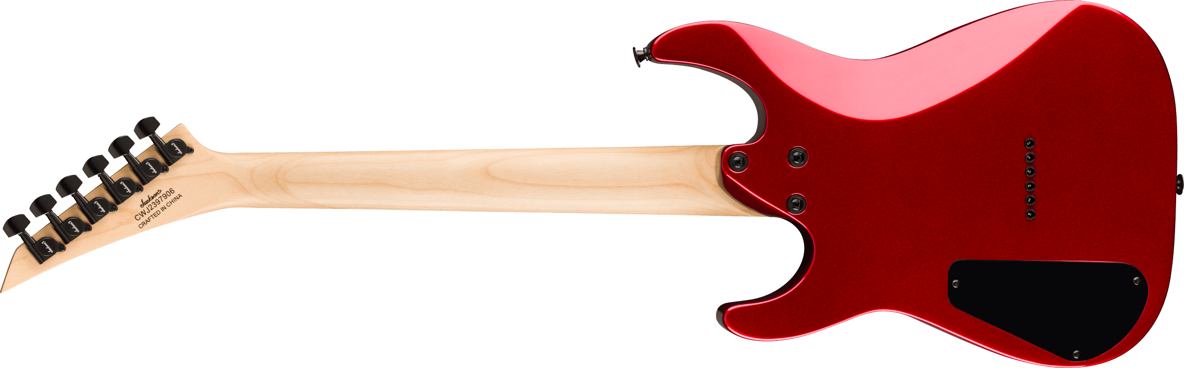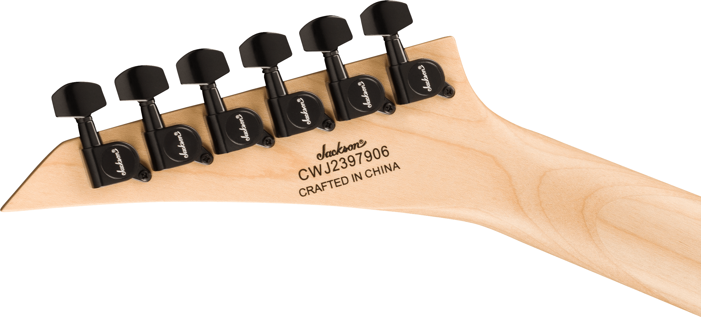 A pair of Jackson high-output humbucking pickups with ceramic magnets crank out clear tone with plenty of girth. The neck position delivers bright highs while the bridge adds plenty of crunchy distortion. Its versatile voice can be shaped with a three-way toggle switch and single volume and tone controls, while a string-through-body hardtail bridge with block saddles improves intonation and sustain.