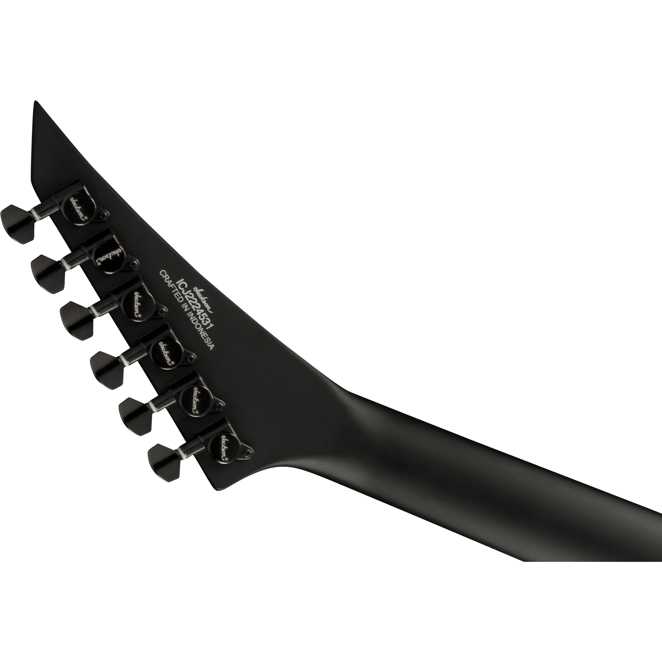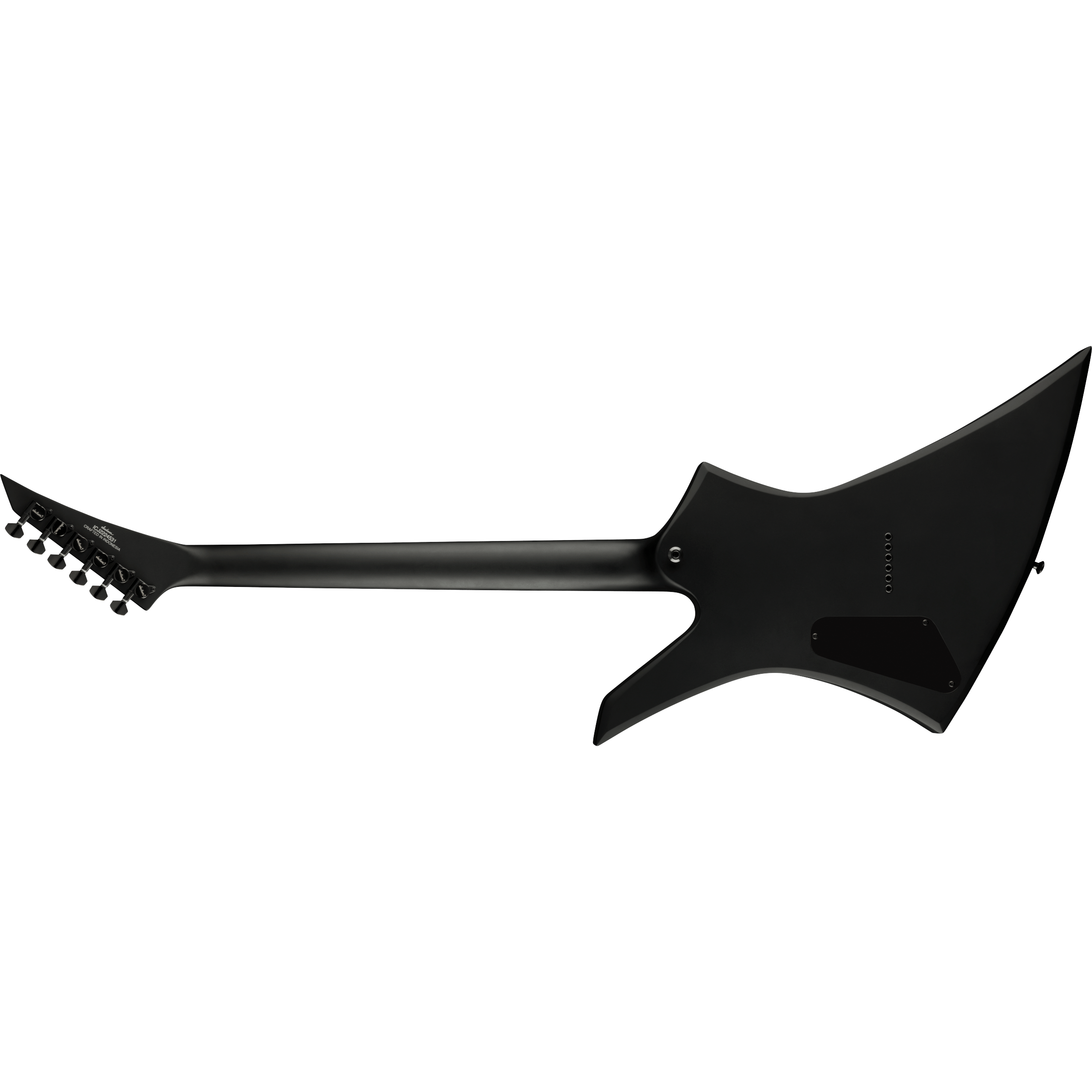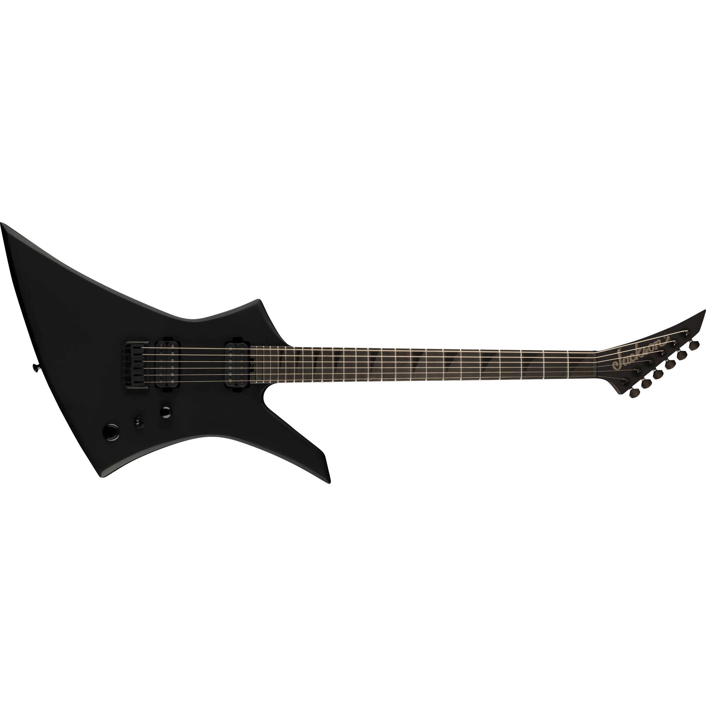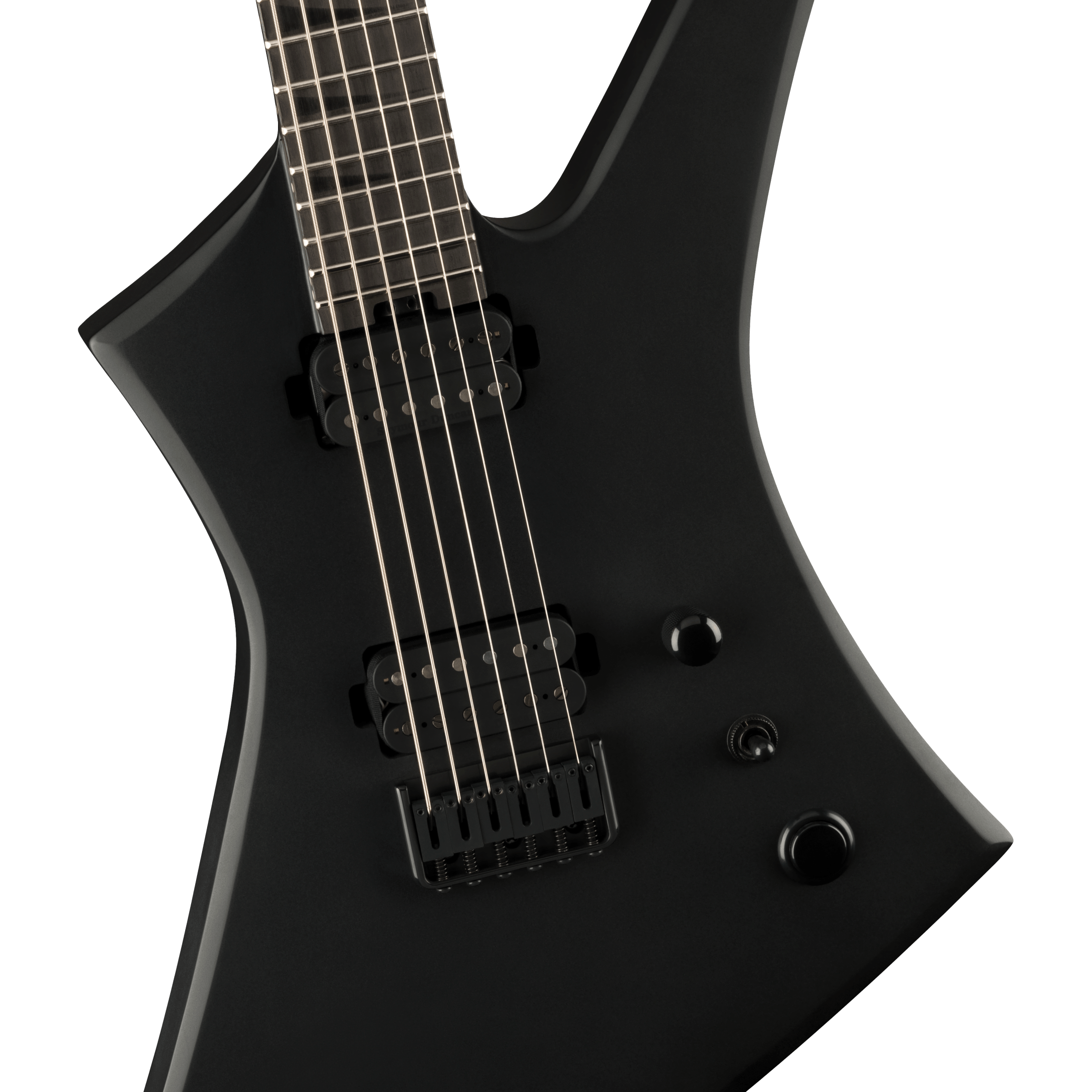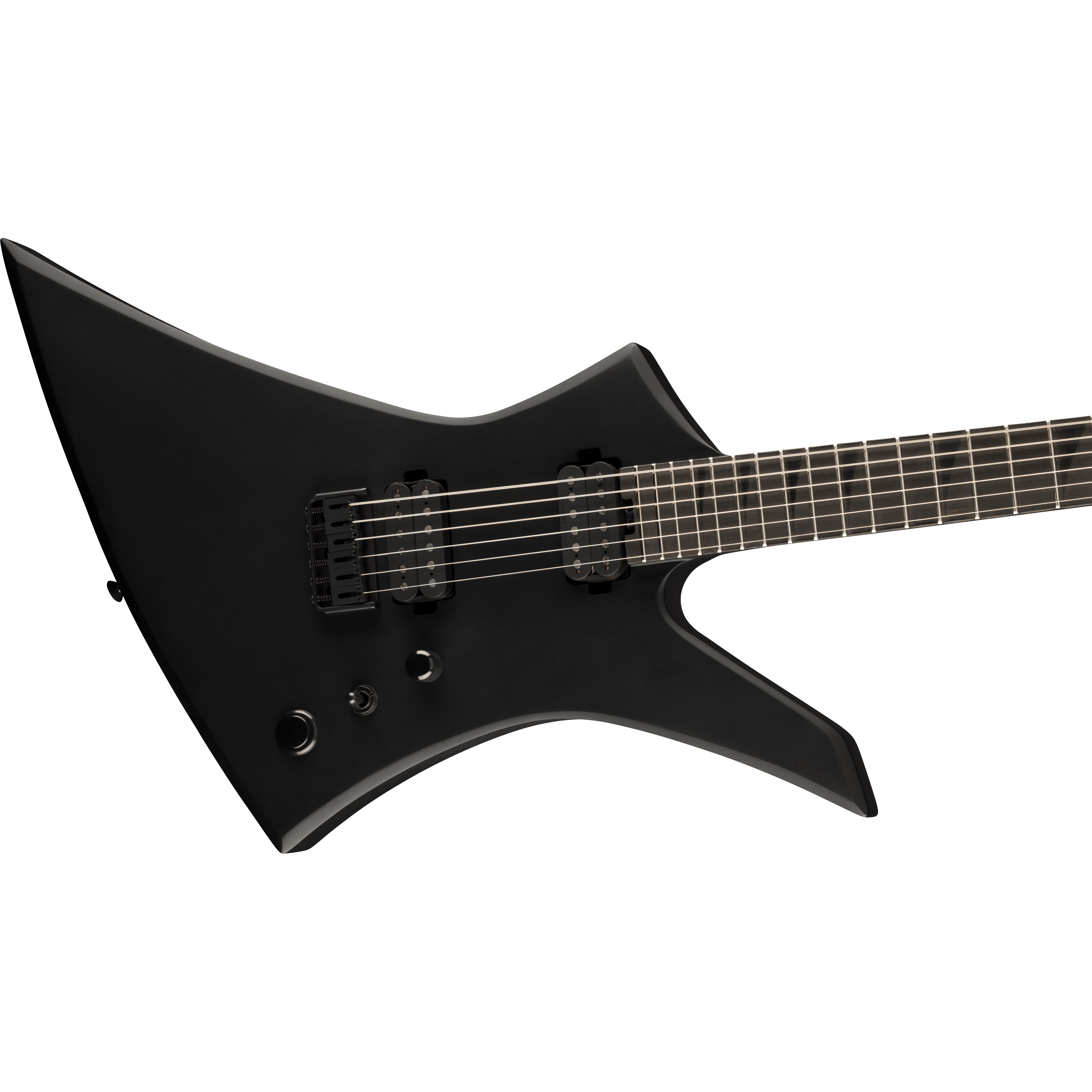 The thundering Pro Plus XT Kelly™ KE HT6 Baritone comes in Satin Black with black hardware and a reverse Jackson pointy headstock.