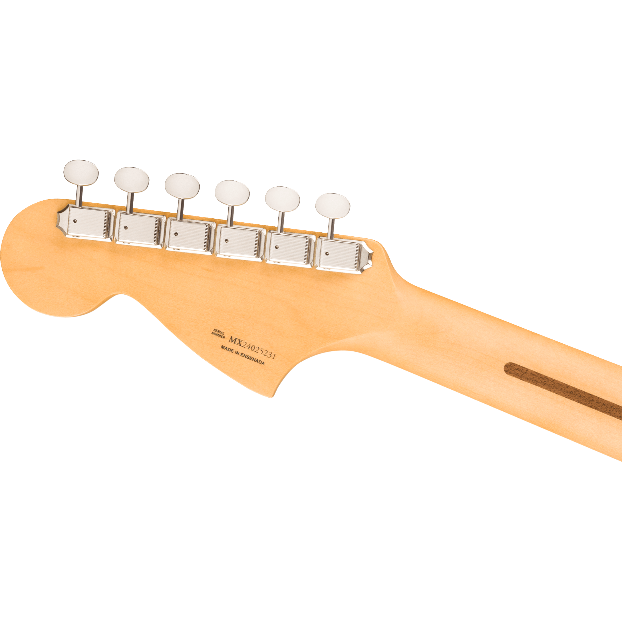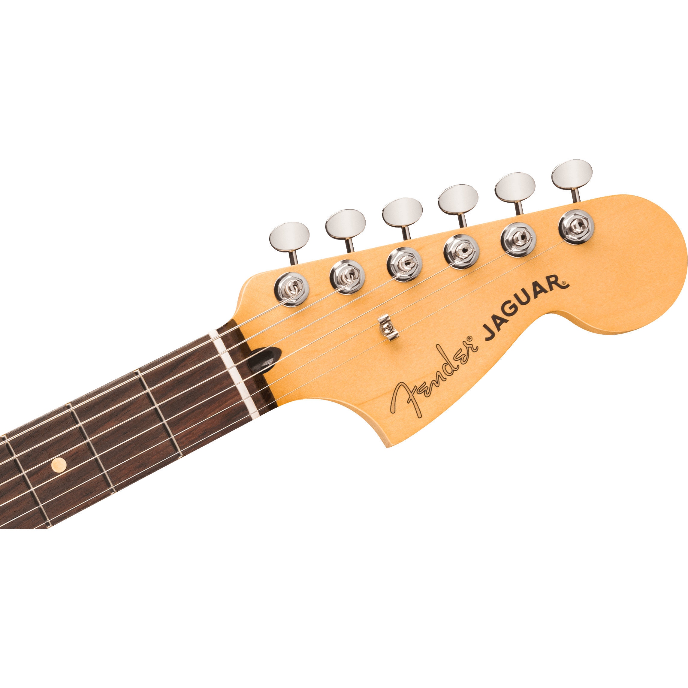 The Player II Jaguar radiates timeless Fender charm, but under the hood, it's primed for today's players. Everything about the neck is designed for fast and fluid playability, from the Modern “C”-profile with silky satin urethane finish on the back to the comfy 9.5”-radius slab rosewood with smooth rolled edges and 22 medium jumbo frets. A classic alder body is available in both timeless Fender finishes and never-before-seen colors unearthed from the archives. Player Series Alnico V (Bridge) and Alnico II (Neck) Single-Coil Jaguar pickups offer crystalline highs, musical mids and tight lows that elevate any genre. The 3-way blade switch lets you easily dial in everything from glassy neck pickup chime to cutting bridge pickup bite and all points in between, while a 6-saddle Jaguar bridge with Floating Tremolo, upgraded Mustang® saddles and ClassicGear™ tuners ensure precise tuning stability for the flexibility to explore endless sonic possibilities.