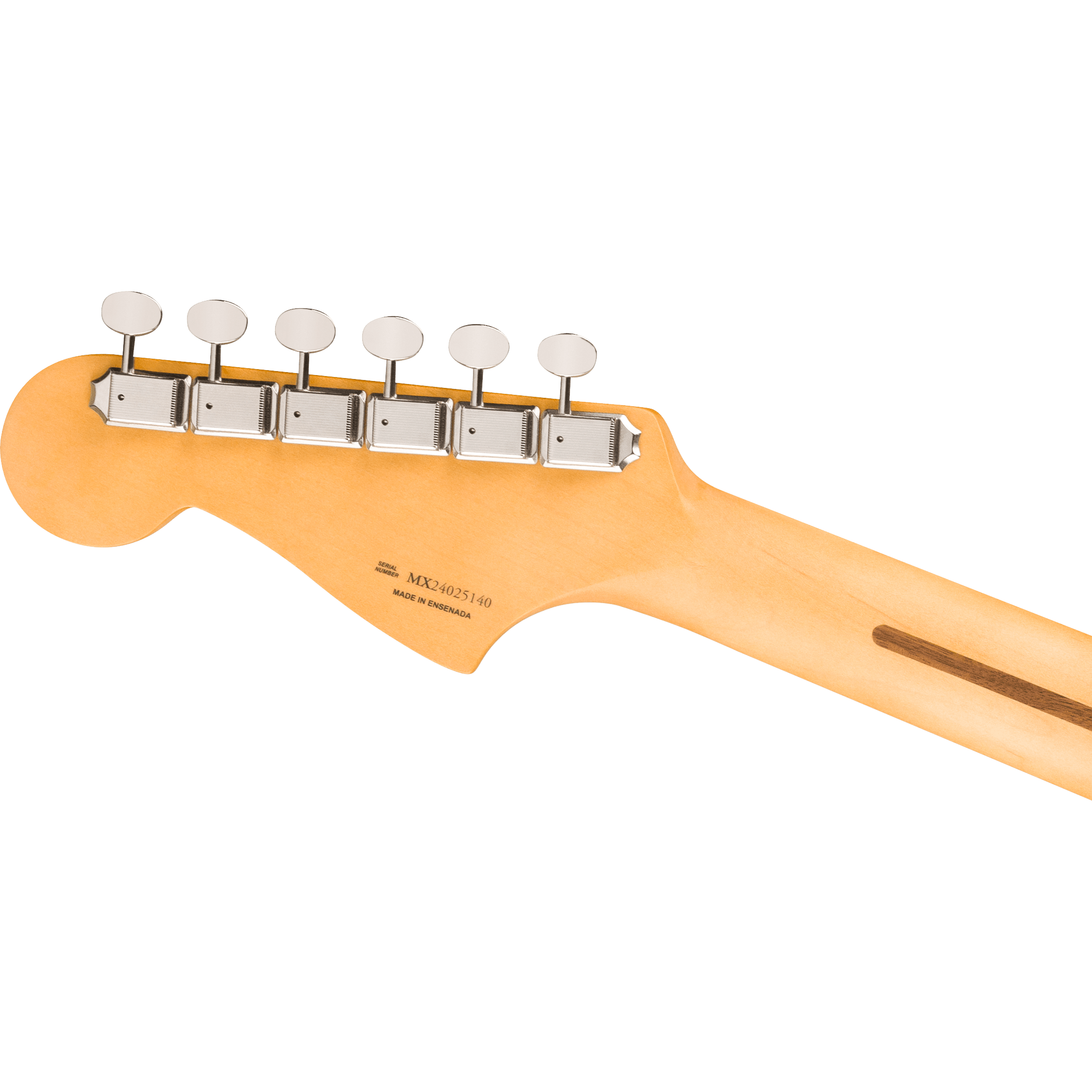 The Player II Jazzmaster radiates timeless Fender charm, but under the hood, it's primed for today's players. Everything about the neck is designed for fast and fluid playability, from the Modern “C”-profile with silky satin urethane finish on the back to the comfy 9.5”-radius slab rosewood fingerboard with smooth rolled edges and 22 medium jumbo frets. A classic alder body is available in both timeless Fender finishes and never-before-seen colors unearthed from the archives. Player Series Alnico V Single-Coil Jazzmaster pickups offer crystalline highs, musical mids and tight lows that elevate any genre. The 3-way toggle switch lets you easily dial in everything from glassy neck pickup chime to cutting bridge pickup bite and all points in between, while a 6-saddle Jazzmaster bridge with Floating Tremolo, upgraded Mustang® saddles and ClassicGear™ tuners ensure precise tuning stability for the flexibility to explore endless sonic possibilities.