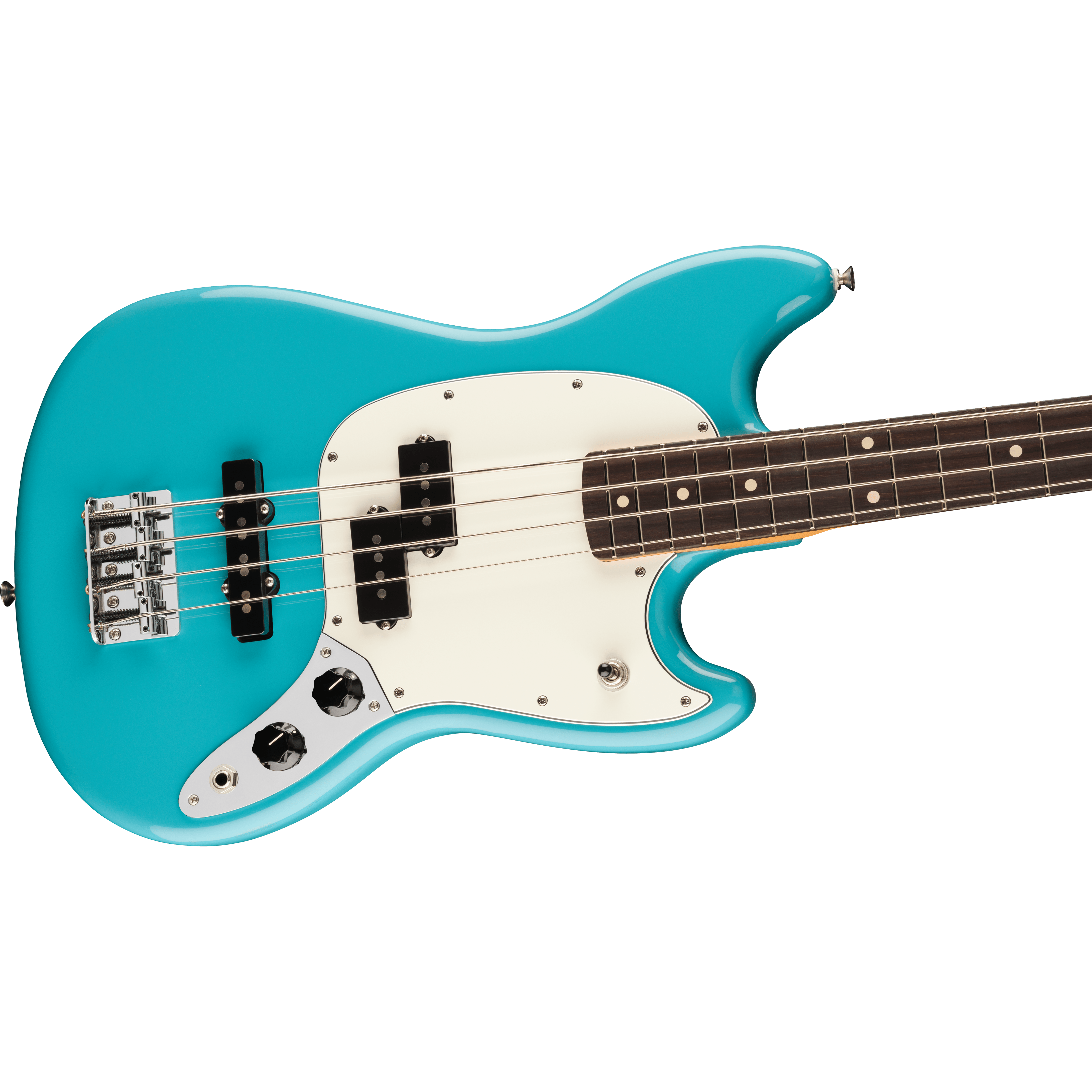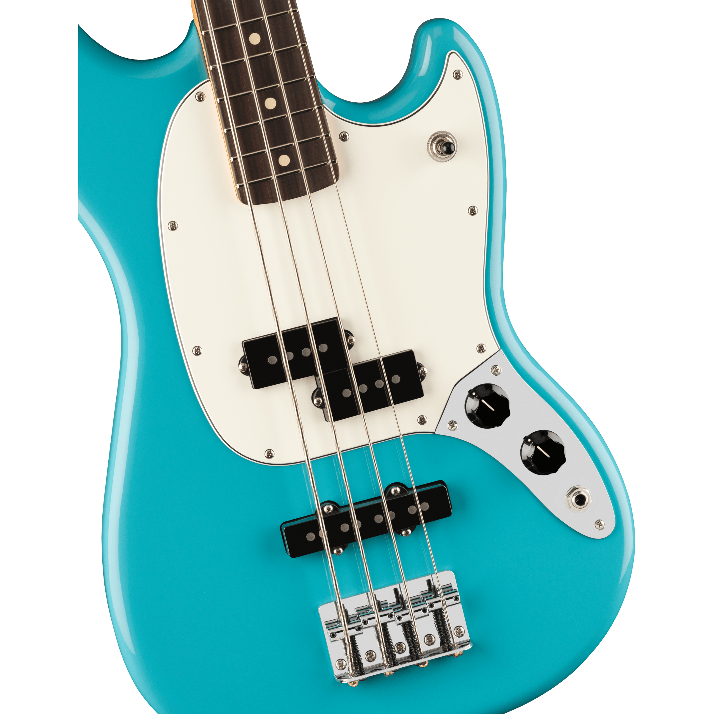 The Player II Mustang® Bass PJ radiates timeless Fender charm, but under the hood, it's primed for today's players. Everything about the neck is designed for fast and fluid playability, from the Modern “C”-profile with silky satin urethane finish on the back to the comfy 9.5”-radius slab rosewood or maple fingerboard with smooth rolled edges and 20 medium jumbo frets. A classic alder body is available in both timeless Fender finishes and never-before-seen colors unearthed from the archives. Player Series Alnico V Split-Coil P bass® and Single-Coil J bass® pickups offer sweet highs, growling mids and seismic lows that elevate any genre. The 3-way toggle switch lets you easily dial in everything this versatile pickup set has to offer, while an adjustable 4-saddle bridge, single-groove steel saddles and open-gear tuners ensure precise tuning stability for the flexibility to explore endless sonic possibilities.