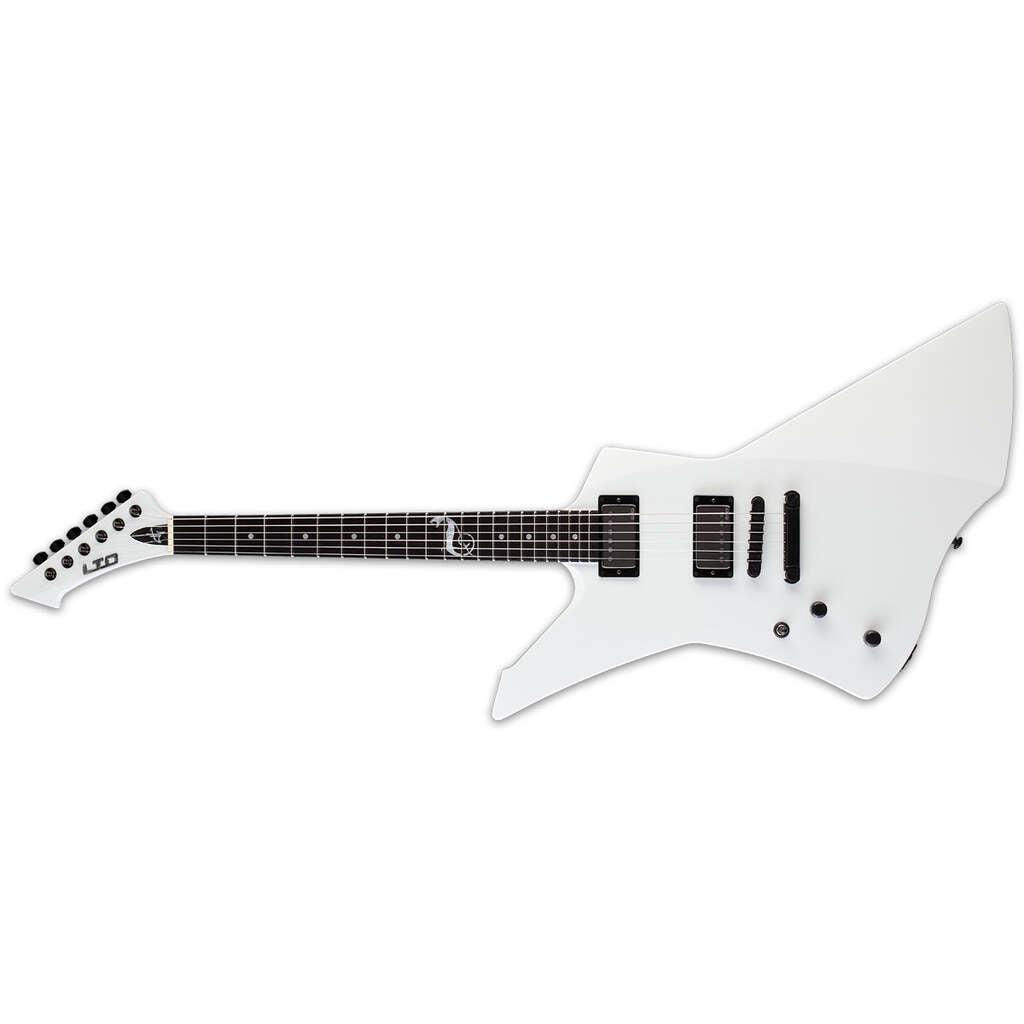 The LTD Snakebyte is a Signature Series model of James Hetfield, the frontman of Metallica and one of the world's most highly respected rhythm guitar players in any genre. The Snakebyte was created based on James' own original design. It features set-neck construction at 24.75" scale, with a mahogany body and a three-piece mahogany neck with ebony fingerboard and 22 extra-jumbo frets with a snake inlay at the 12th fret. The LTD Snakebyte is powered by James' own EMG JH SET active pickups, and includes a TonePros locking TOM bridge and tailpiece. Available in Snow White and Black Satin finishes.
