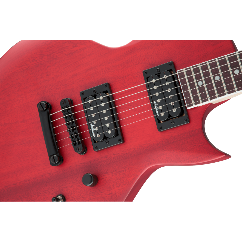 Two Jackson high-output humbucking pickups in the bridge and neck positions crank out clear tone with plenty of the girth required for current styles. The pickups' crisp, clear tone is channeled by a three-way toggle switch along with single volume and tone controls for versatile sound that matches any playing situation, and can cut through a thick mix to highlight your playing.