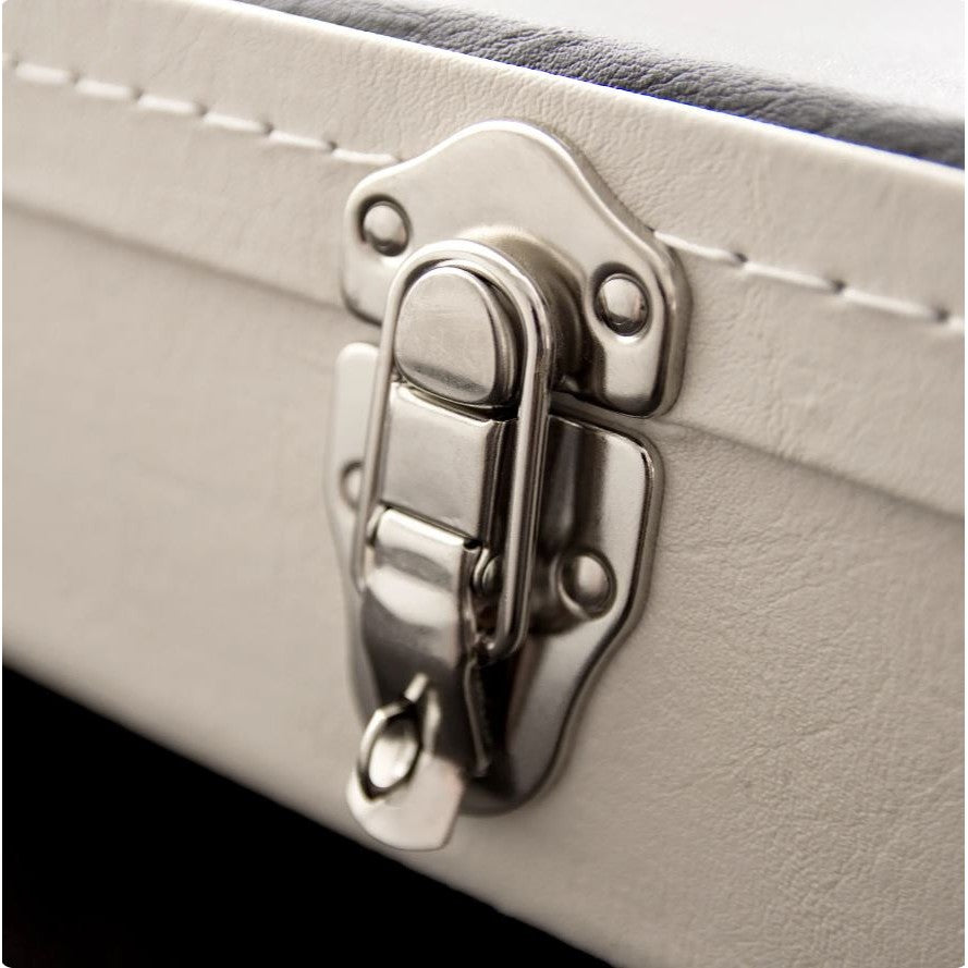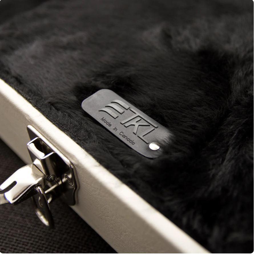 This unique guitar case is made by TKL. All of Reverend's Teardrop cases feature a multi-ply, hand-laminated wood shell. Equipped with a comfortable molded handle. The interior is well-padded with a spacious accessory compartment. A black top and bottom with white sides have become synonymous with Reverend.