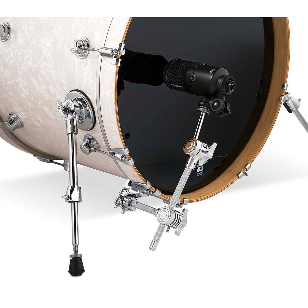 Add a microphone to any DW bass drum in seconds with this ultra-sturdy, stand-free microphone attachment. A dual-pivoting assembly includes a 6.5” long knurled mic arm with standard 5/8” (27 tpi) integrated threads, complete with universal mic clip. Toothless tilters with techlock™ allow for exact positioning on either the resonant or batter side of the bass drum via an innovative 2141 claw hook clamp that securely grabs both sides of any DW or PDP bass drum counter hoop.
