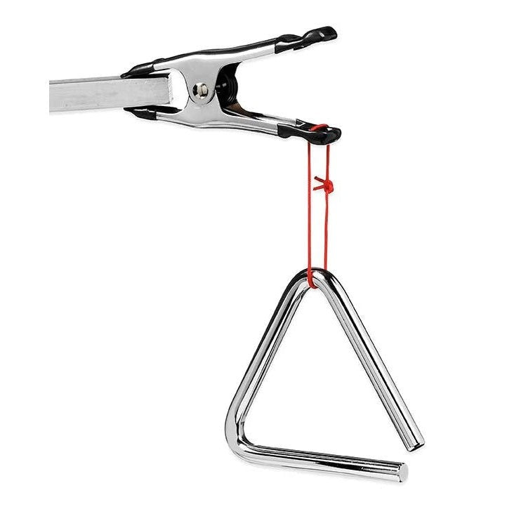Designed to hold any triangle, the LP Triangle Holder is spring loaded allowing it to clamp onto music stands, cymbal stands and table ledges. It is constructed of heavy-duty steel with vinyl dipped tips for durability and stability while reducing vibration. A nylon cord is included.