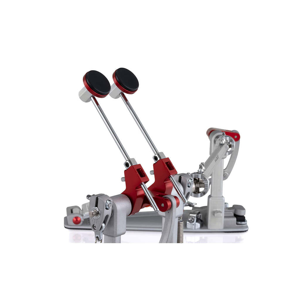 The Pearl Demon XR Double Pedal delivers the same machined design and fluid action of the Demon XR Single Pedal but with the zero-latency action of the included Z-Link machined aluminum universal pedal linkage.