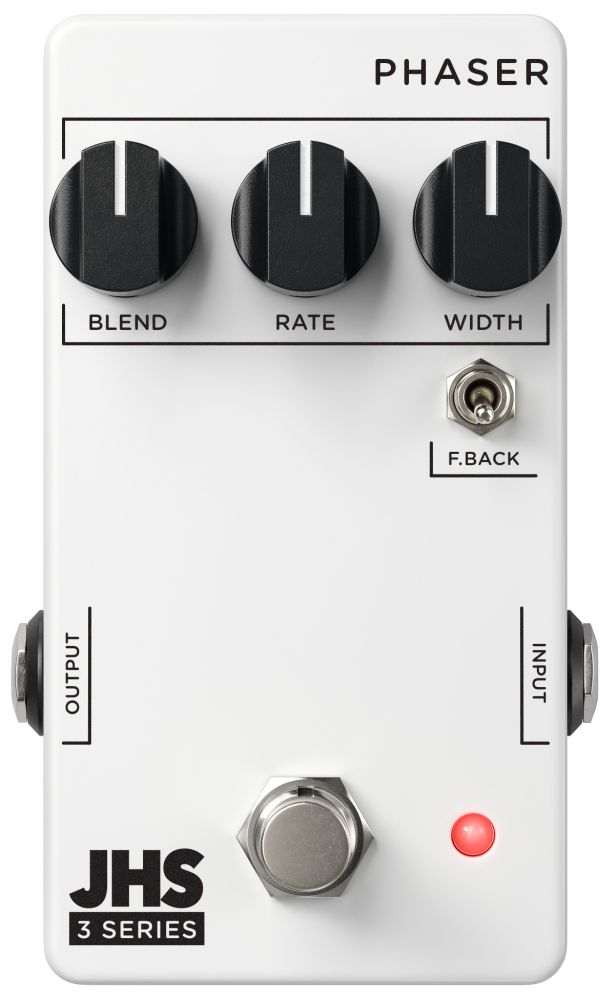 The JHS Pedals 3 Series is a collection of pedals designed to give you affordability and simplicity without compromising quality. Each 3 Series pedal is made by us in Kansas City, MO, using high-quality parts, quality control, and attention to every detail. Each pedal has three simple controls and one toggle that offer a wide range of sounds, perfect for beginners and professionals alike. The JHS Pedals 3 Series will inspire your playing and help you explore new sounds at a totally approachable price point. The 3-Series Phaser is a versatile and easy to use six-stage phaser pedal inspired by the classic phaser circuits of the 1970s. It has all the standard phase tones you would expect, but because of its unique Blend control and Feedback toggle, you can achieve an even wider range of modern and experimental tones. LENGTH 4.42” X WIDTH 2.38” X HEIGHT 1.22