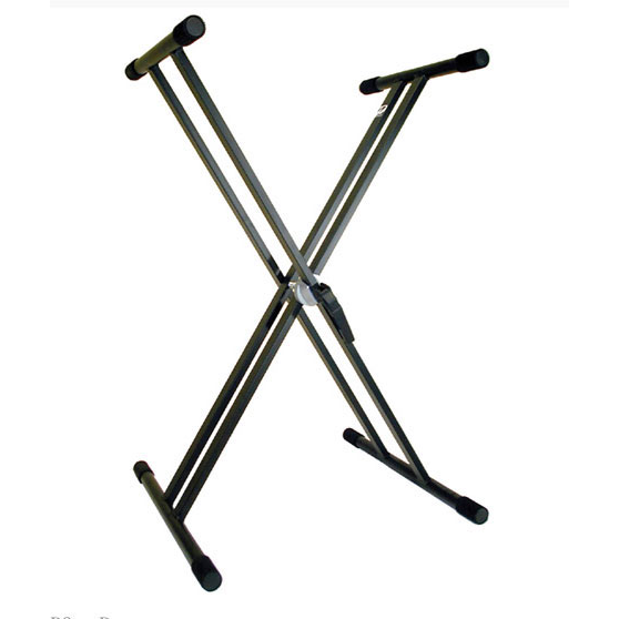 X-style keyboard stand with adjustable height, double braced construction and non-slip support tiers and feet. Easy adjustable lever lock system. Black finish.
