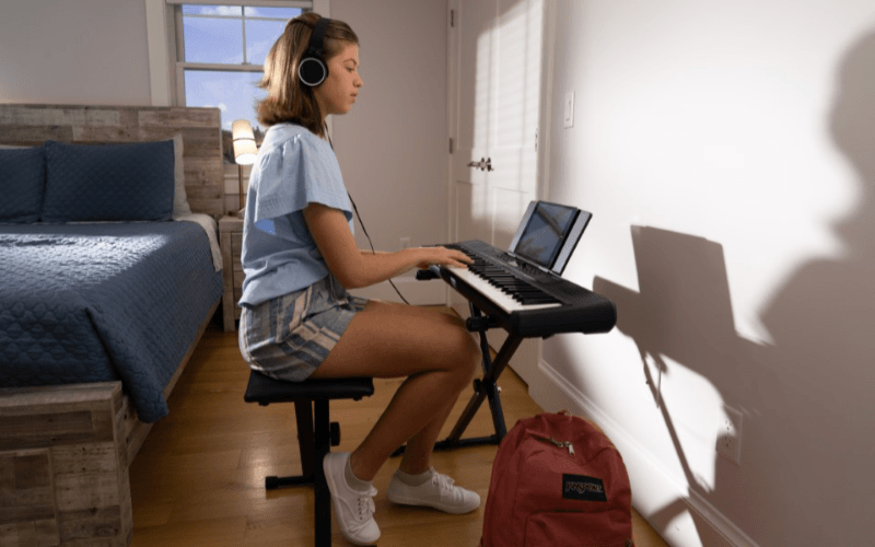 - Full-back music rest, readily keeping your tablet or sheet music secure at the ideal height and angle