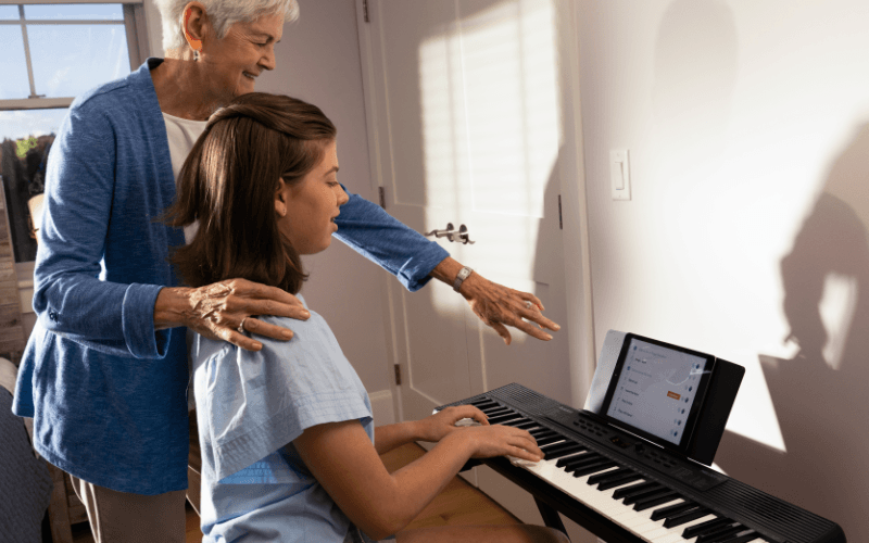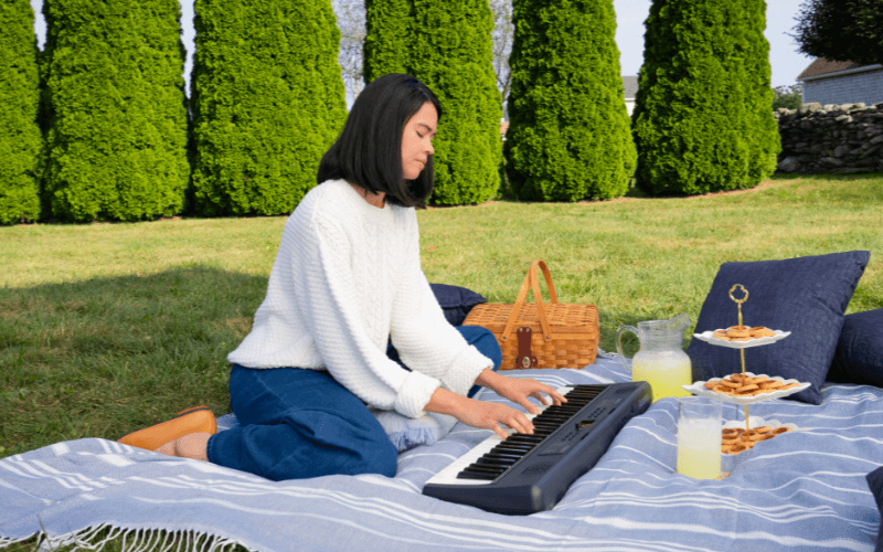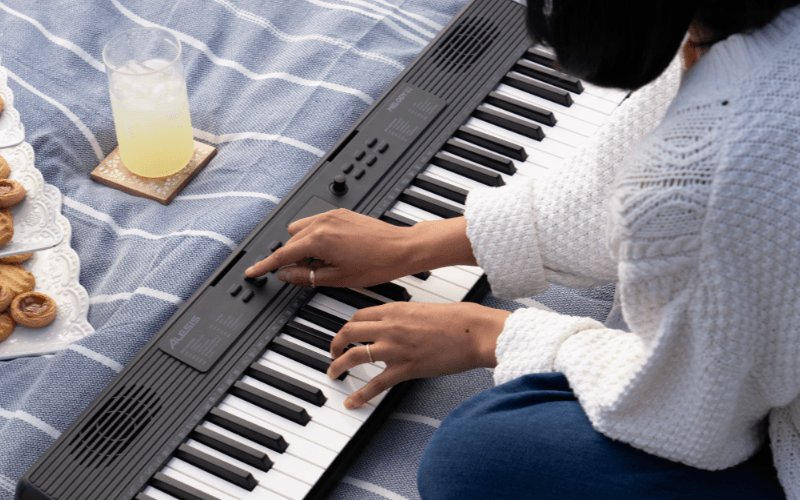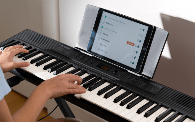Whether you are traveling to lessons or to perform for your family at a party, Melody 61's built-in speakers, optional battery power, and compact size make it easy to transport.