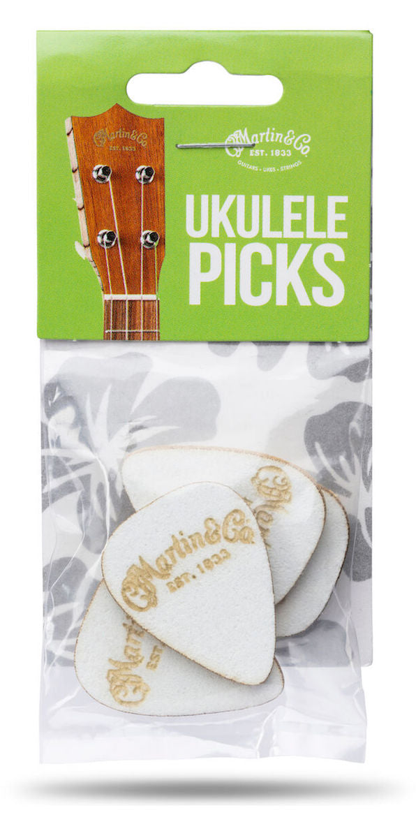 Make your uke sing with soft, durable picks. Custom designed to bring out the most from the nylon strings of a ukulele, with none of the dust and deterioration of felt picks. 2.5 mm White with pressed C.F. Martin logo Four picks per pack