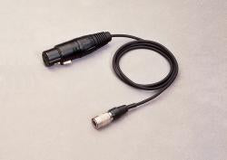 3-pin XLRF connector to locking 4-pin connector for use between a dynamic low-impedance microphone (or battery-operated condenser microphone) and A-T UniPak® body-pack wireless transmitter. 29.5" (0.75 m) cable.