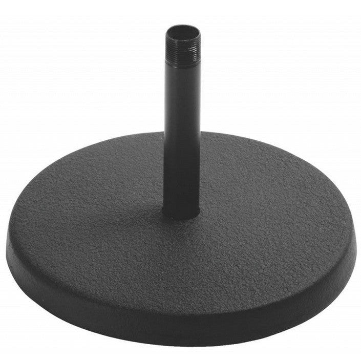 Our DS7100B Desktop Mic Stand excels at short-height miking applications. The removable straight 4" shaft mounts standard mic clips and accessories. A heavy base provides stability and balance for reliable mic support. Nonslip rubber feet reduce vibrations to prevent mic rumble. A model of functional simplicity, this stand makes quick work of setting up a mic on a desk or podium.