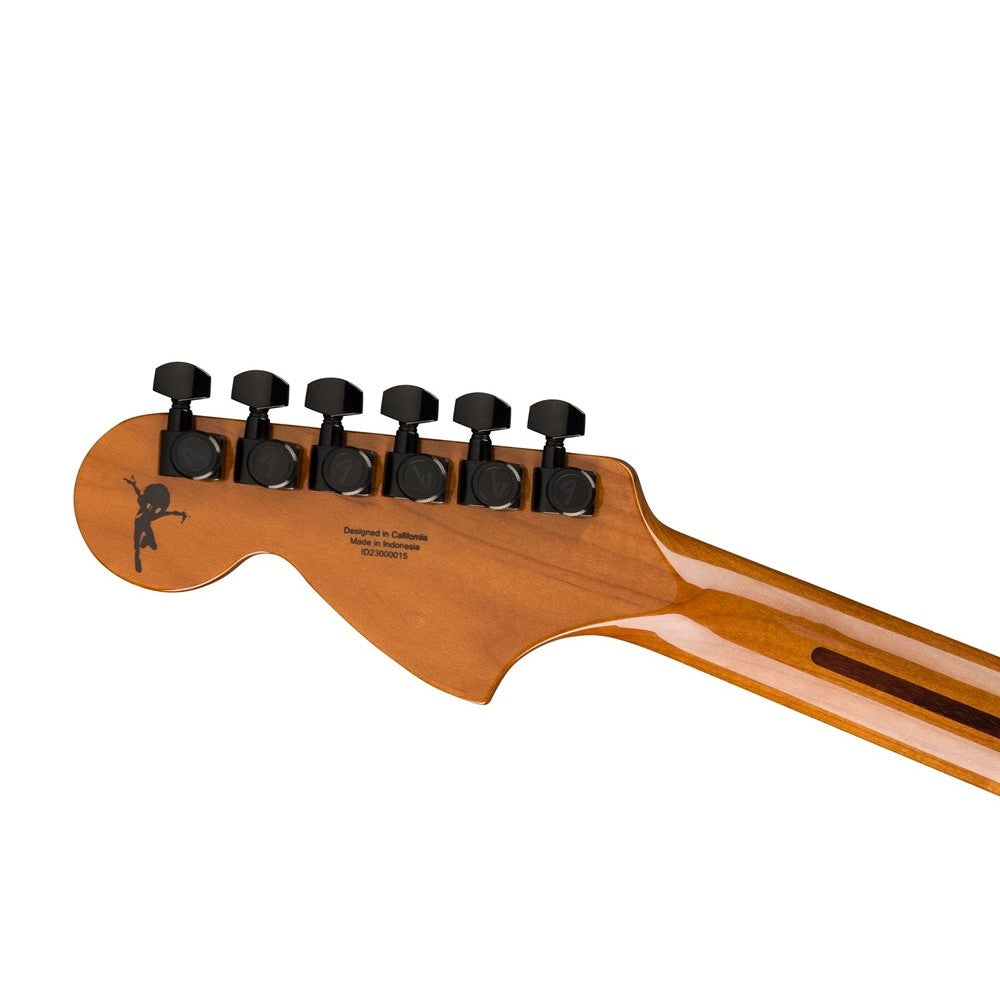 Designed with an offset semi-hollow body, the Tom DeLonge Starcaster boasts a Seymour Duncan® SH-5 Duncan Custom™ humbucker for turbo-charged tone that's perfect for chunky power chords and crunchy riffs. But it's not all about power — the streamlined control setup consisting of a single master volume combined with a treble bleed circuit preserves the guitar's natural high-end, ensuring sparkly cleans and chime-y edge-of-breakup tones. The comfy Modern "C" neck features medium jumbo frets on a 12"-radius rosewood fingerboard for a modern feel with superior playability. Other highlights include Fender locking tuners for rock-solid tuning stability and fully adjustable bridge with stop tailpiece for classic looks, superior setup adjustment and enhanced tuning stability. DeLonge's original signature artwork is featured on the back of the headstock and custom-crafted neck plate.