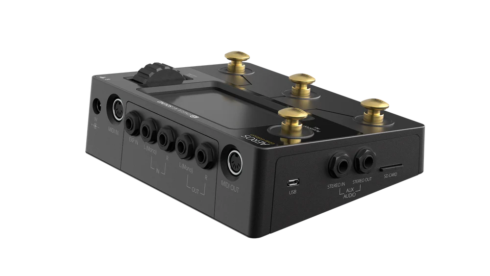 Transcend musical boundaries with the Aeros Gold Edition looper pedal. Create, perform and record both parallel and sequential loops. Dual modes and quantization options adapt to your playing style. Intuitive hands-free navigation and silent footswitches offer a superior playing experience.