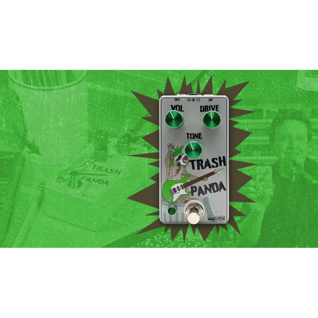 In a time of supply chain delays and part shortages, the Trash Panda by Summer School Electronics is a survivor. Designed from spare available parts, and assembled in a unique way that allows it to be an overdrive to play everything from country to hard-rock, the Trash Panda is a high-gain soft-clipping overdrive/distortion with a wide range tone control that can roll off piercing high end, or remove the mud to make your guitar shine. The Trash Panda runs on a standard 9-volt, neg. center power supply, and has a lifetime warranty. Hand built in Syracuse, NY by working musicians with attention to detail.