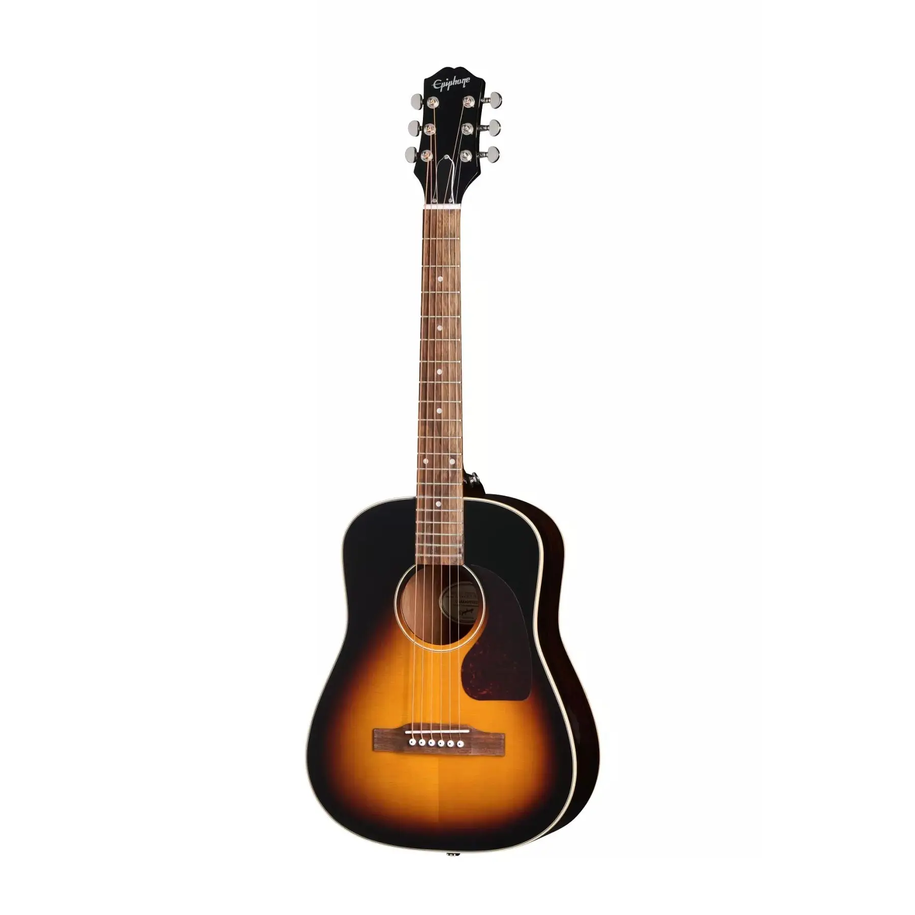 The J-45 Express from Epiphone is a cool new 7/8-size guitar that makes the perfect travel companion for seasoned guitarists and is also an excellent first guitar choice for aspiring new players. The shorter 22.68" scale length not only makes it compact and easy to take with you but also eases finger stretching for new players and makes learning how to play easier and more comfortable. It is made from quality materials, including a layered mahogany body, a mahogany neck with a laurel fretboard, and even a solid spruce top. A gig bag is also included.