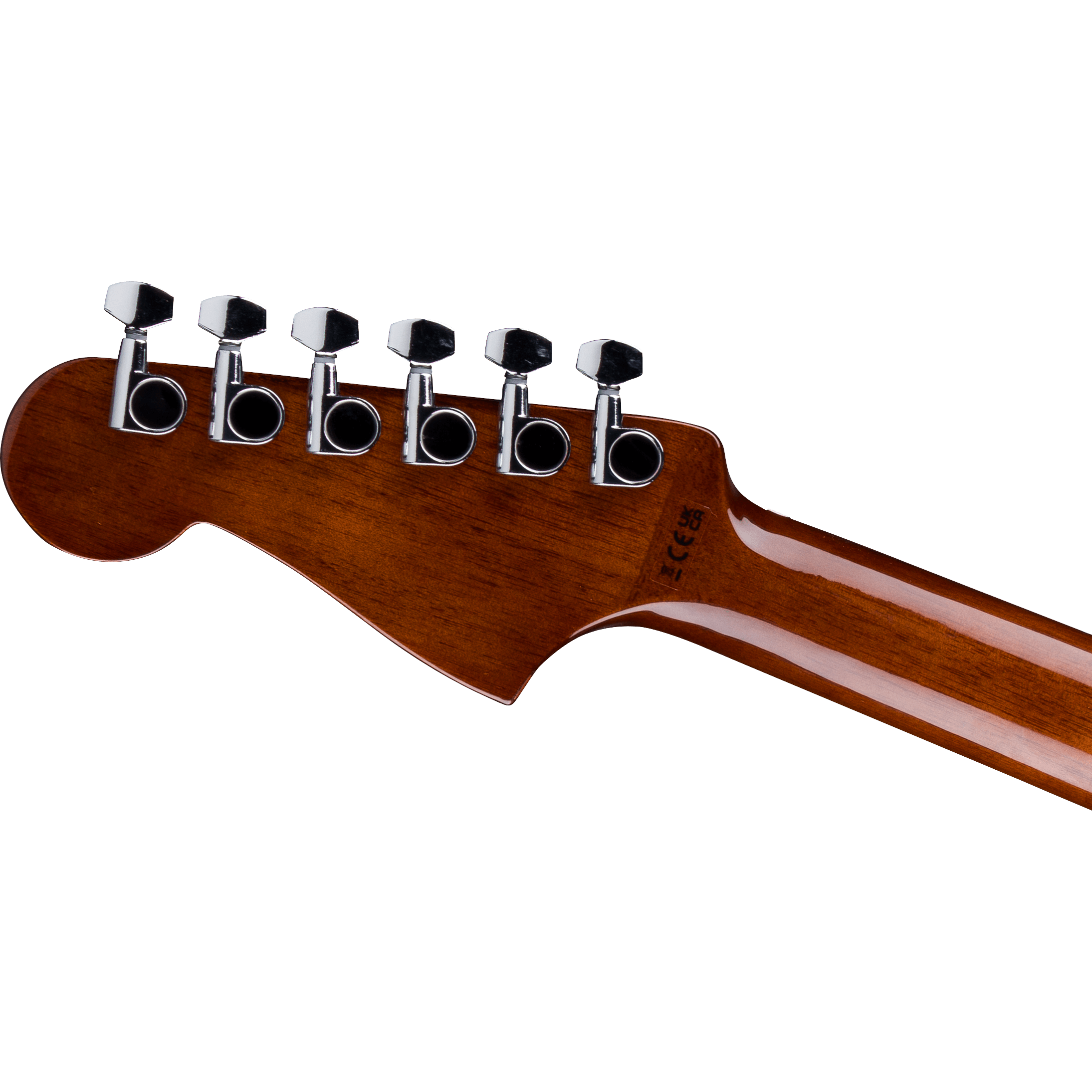 The dreadnought shape is beloved for its robust, deep tone and versatile personality, making it the go-to choice for any musical playing style from strumming to soloing. The California Standard Redondo™ CE features resilient laminate construction with a spruce top and sapele back and sides for impressive and satisfying tonal richness, while a 25 ½” scale neck with a slim “C”-shaped profile provides an inviting and effortless playing feel. The onboard Fender electronics provide high-quality output for live amplification, recording and effects, as well as a convenient onboard digital tuner. Other noteworthy details include an oiled walnut fingerboard and bridge, sealed gear tuning machines for smooth and accurate tuning action, and a sleek long-lasting gloss finish.