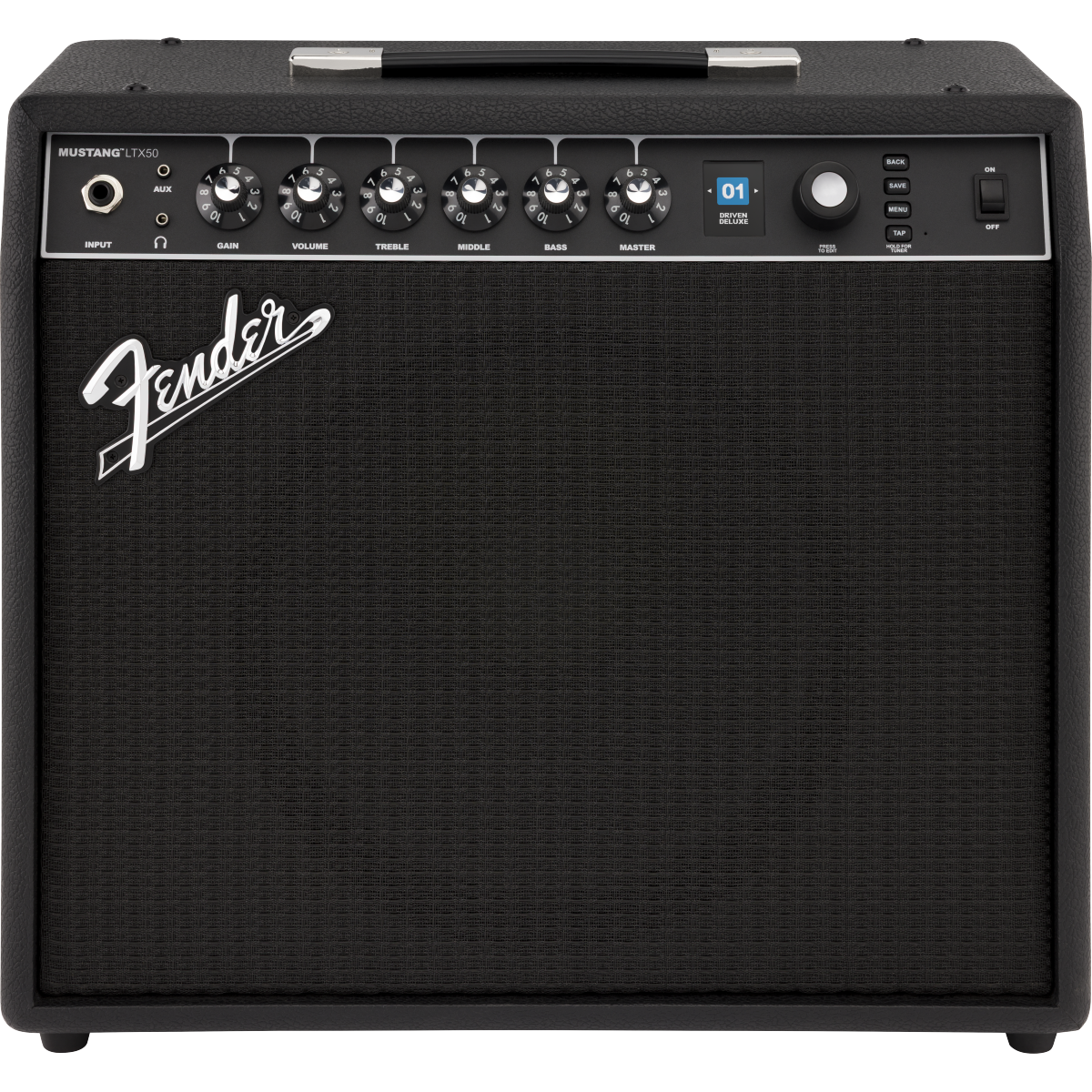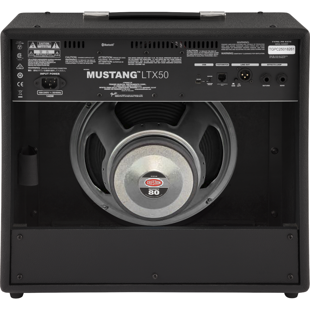 Mustang® LTX 50 is ideal for practice or performance with a 12" Celestion® G12P-80 speaker and an optional gig-ready 5-button footswitch. Onboard Bluetooth® allows you to jam along with your favorite songs as well as create, edit, download and share presets using the Fender TONE® app.