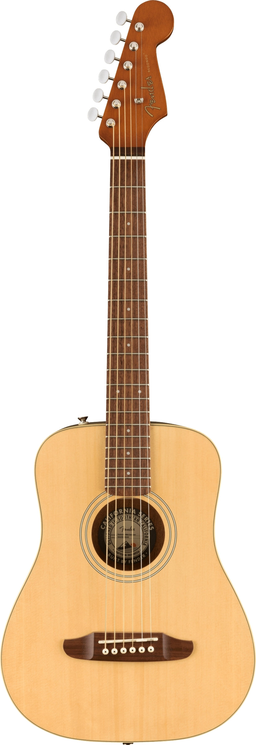 The Redondo Mini packs a big punch into a smaller sized acoustic guitar. Featuring a spruce top paired with mahogany back and sides, this guitar has a 22 ¾” scale length, but delivers the tone of a full-sized guitar. Like all models in the California Series, the Redondo Mini features a 6-in-line Strat headstock inspired by Fender’s electric legacy.