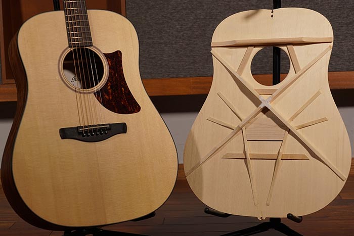 After spending years of trial-and-error, Ibanez realized the out-of-the-box X-M Bracing to generate the ultimate sound standing out on the stage. The carefully designed scalloped X-bracing, the allocation of tone braces, and finger braces transmit the string vibration efficiently through the bridge to the body. The X-M Bracing creates the clear bottom and crispy treble sound with trimmed warm mid-range, yet provides a wide dynamic range and high response.