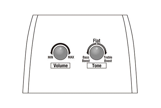 This preamp utilizes a two knob configuration. The knob closest to the player is the volume control for the magnetic pickup. The knob furthest from the player is the tone knob.