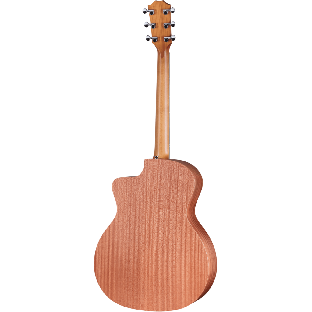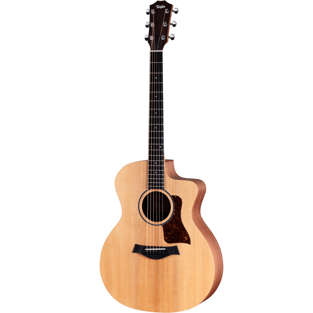 Offering the accommodating feel and vibrant sound of a full-size, standard-scale cutaway Grand Auditorium, the Taylor 14ce delivers great value for players in earch of a versatile, reliable acoustic-electric. Layered African sapele back and sides paired with a solid torrefied spruce top produce a clear, articulate voice with impressive projection and a touch of sweetness, thanks to our special roasting process that adds warmth and maturity to the tone. Cantilevered V-Class voicing architecture inside the guitar enhances the sustain, volume and low-end response, while a slender, heelless maple neck delivers familiar Taylor playability. Minimalist appointments like a matte finish, 4-mm dot inlays and faux-tortoiseshell pickguard add to the 14ce's understated visual appeal. It ships in a gig bag with an onboard Fishman Sonitone GT-2 pickup for amplified play across a wide range of musical settings.
