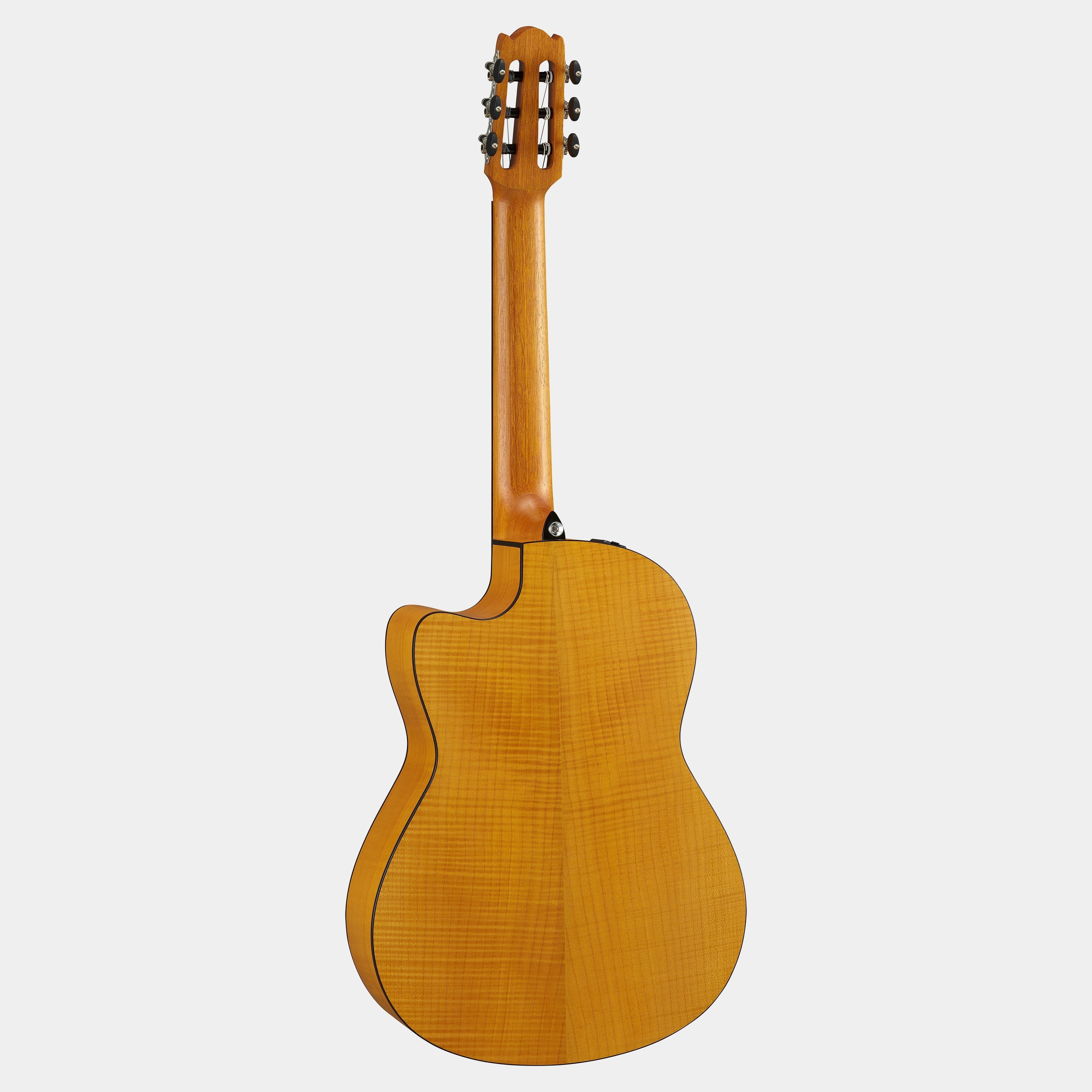 The NCX1 acoustic-electric guitar’s contemporary appearance, traditional neck profile, and advanced electronics make it an excellent choice for nylon-string players seeking superior amplified sound, while its strap buttons and exceptional amplified sound make it especially appealing to performing guitarists.
