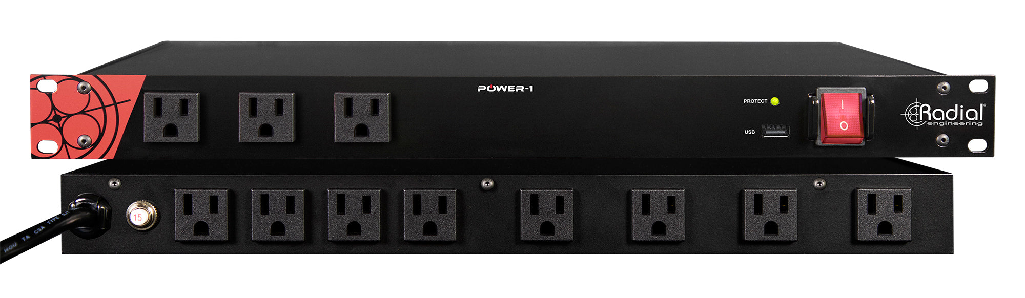 Radial power clean surge suppressors give musicians, engineers, producers, studio owners, commercial facilities, and anyone working with valuable electronic equipment protection from power surges that can damage or destroy music equipment instantaneously. Eight rear panel outlets are provided (four with wall-wart spacing to accommodate any PSU size), along with three front panel outlets and a USB charging port to easily power personal devices. A heavy-duty power on/off switch, rugged outlet connectors, and steel construction ensure that the Power-1 performs night after night without fail.