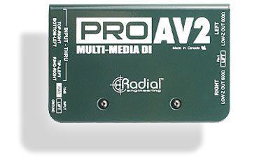 The Radial ProAV2 is a passive direct box specifically developed with the audi-video integrator in mind. The ProAV2 has full two-channel stereo functionality.
