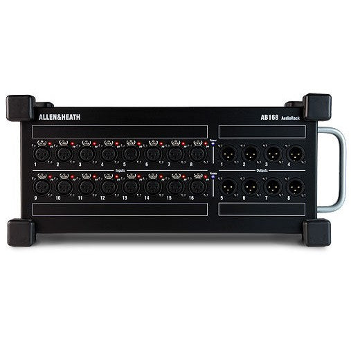 AB168 is a portable AudioRack, providing 16 XLR inputs and 8 XLR outputs when connected to a GLD-80 or GLD-112 mixer, or to an AR2412 AudioRack.