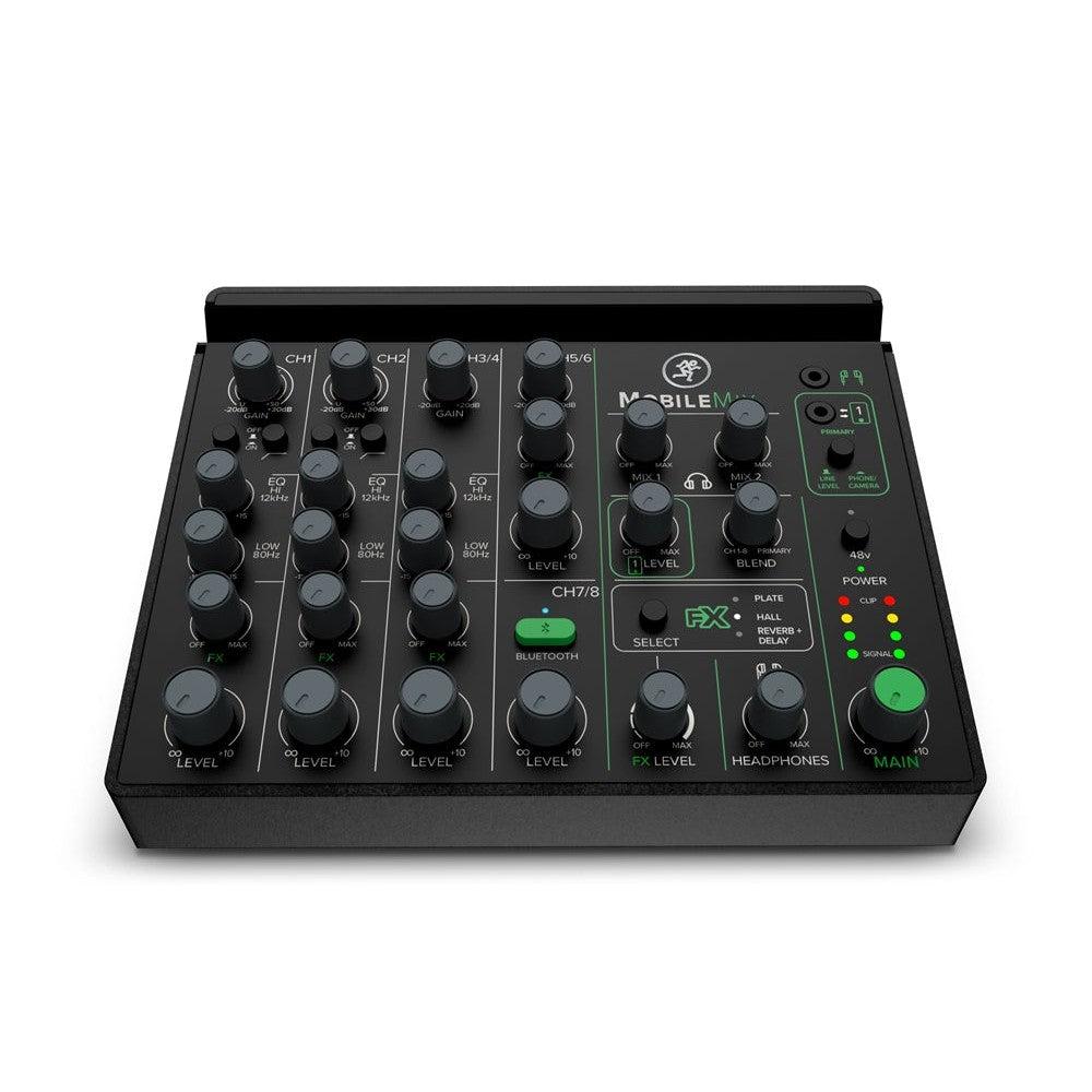 - MobileMix packs the legendary build quality and excellent sound that make Mackie trusted worldwide. It begins with 2 fully featured microphone preamp channels with combo XLR and 1/4" connectors, hi-Z impedance switches for electric guitars and other passive instruments, low-cut filters and 48-V phantom power for condenser mics.