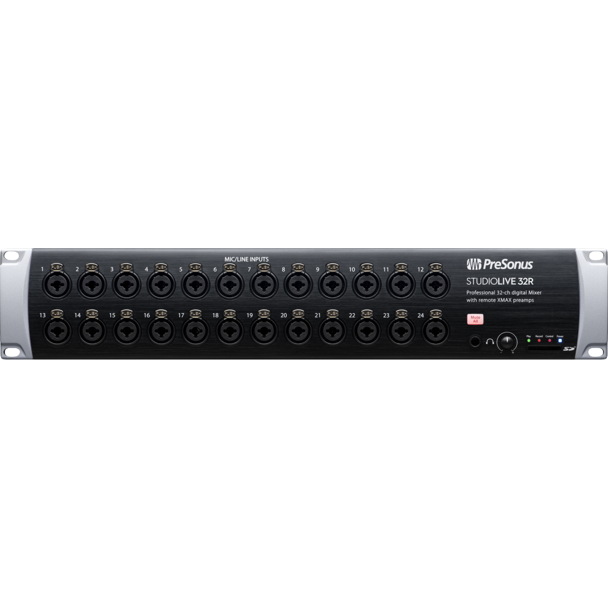 The StudioLive® 32R digital mixer is four audio tools in two compact rackspaces. Use it as a standalone digital mixer with UC Surface remote mixing software. Pair it with your StudioLive Series III console mixer to use as a stage box or integrated monitor mixer. Connect it with EarMix 16M monitor mixers for the ultimate personal monitor system. Plug it into your studio computer, and you have a continuously bidirectional, 128-channel (64x64) USB audio interface with modeled vintage dynamics and EQ plug-ins on every input and bus. Whether used standalone or as part of a complete audio system, no other rackmount digital mixer is as flexible or as powerful.