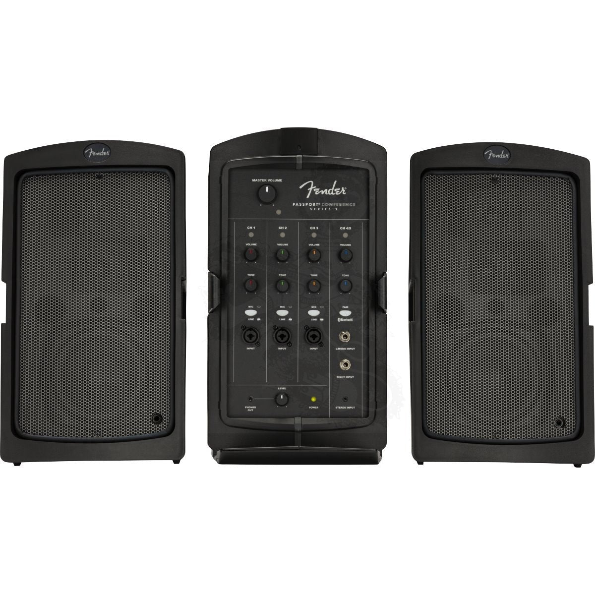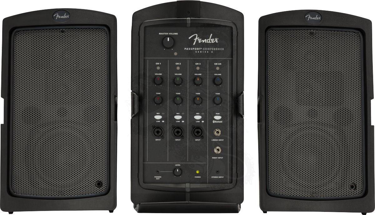 With easy-to-use features and great go-anywhere portability, the Passport® Conference Series 2 audio system is ideal for small to medium-size audiences. With Bluetooth® audio streaming, its full-range speakers, versatile features, friendly front-panel controls and 175 watts of power provide clear and reliable Fender sound ideal for a wide range of uses—educational, sporting and worship events; meetings, seminars and presentations; and musical performances at parties, small clubs, coffeehouses and much more.